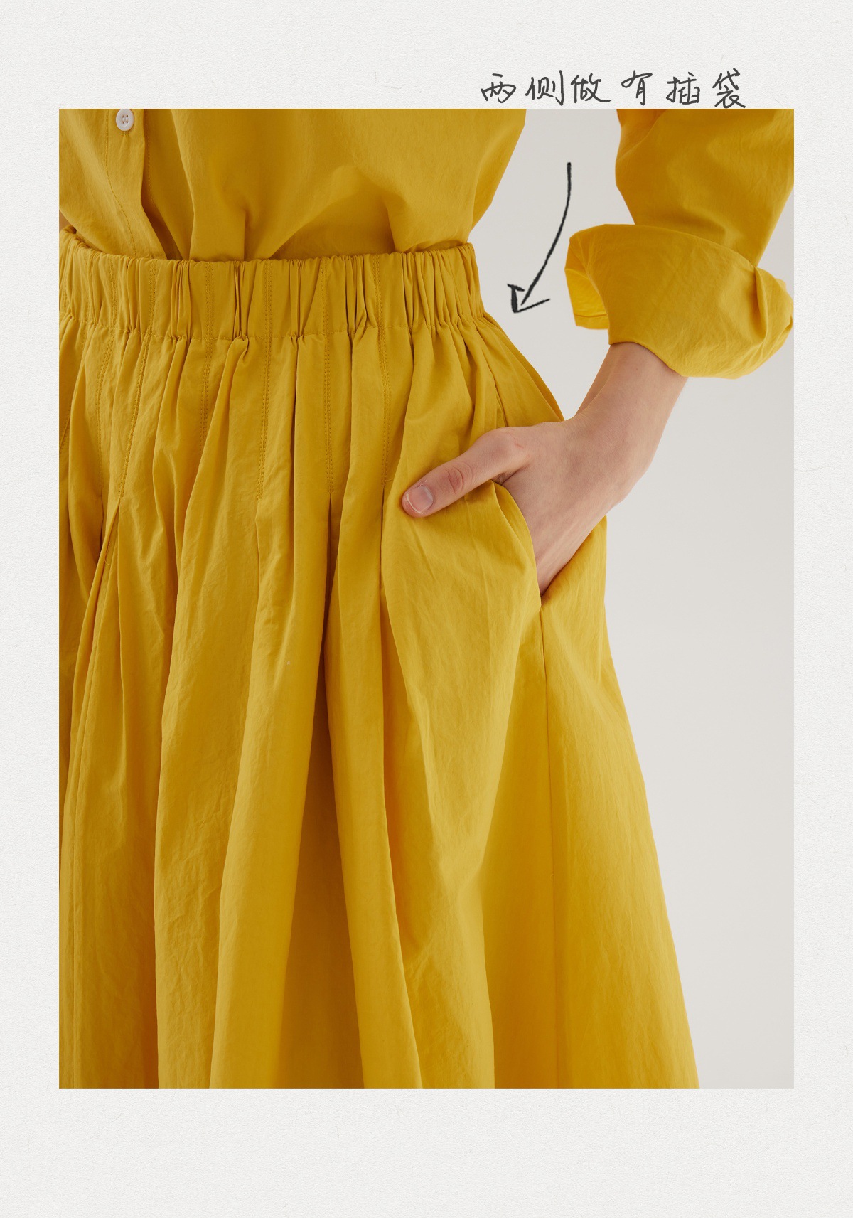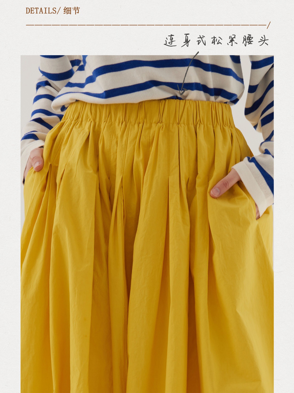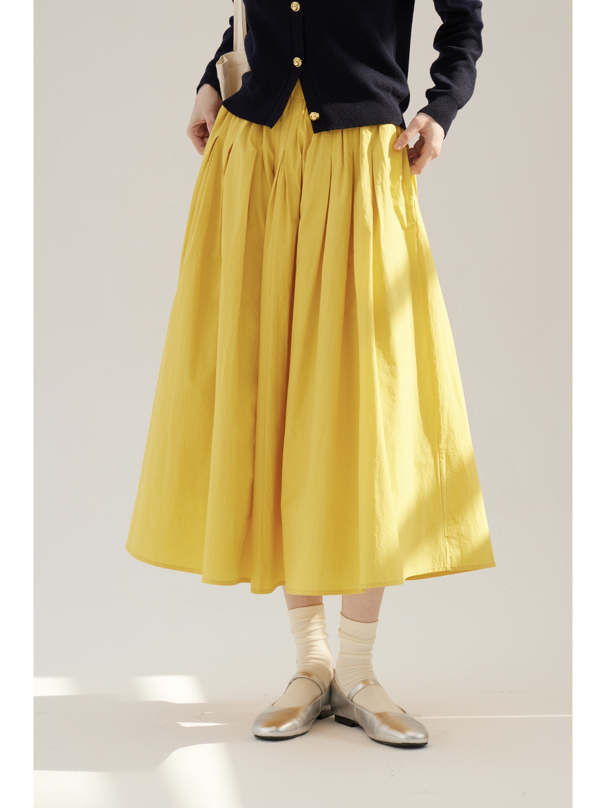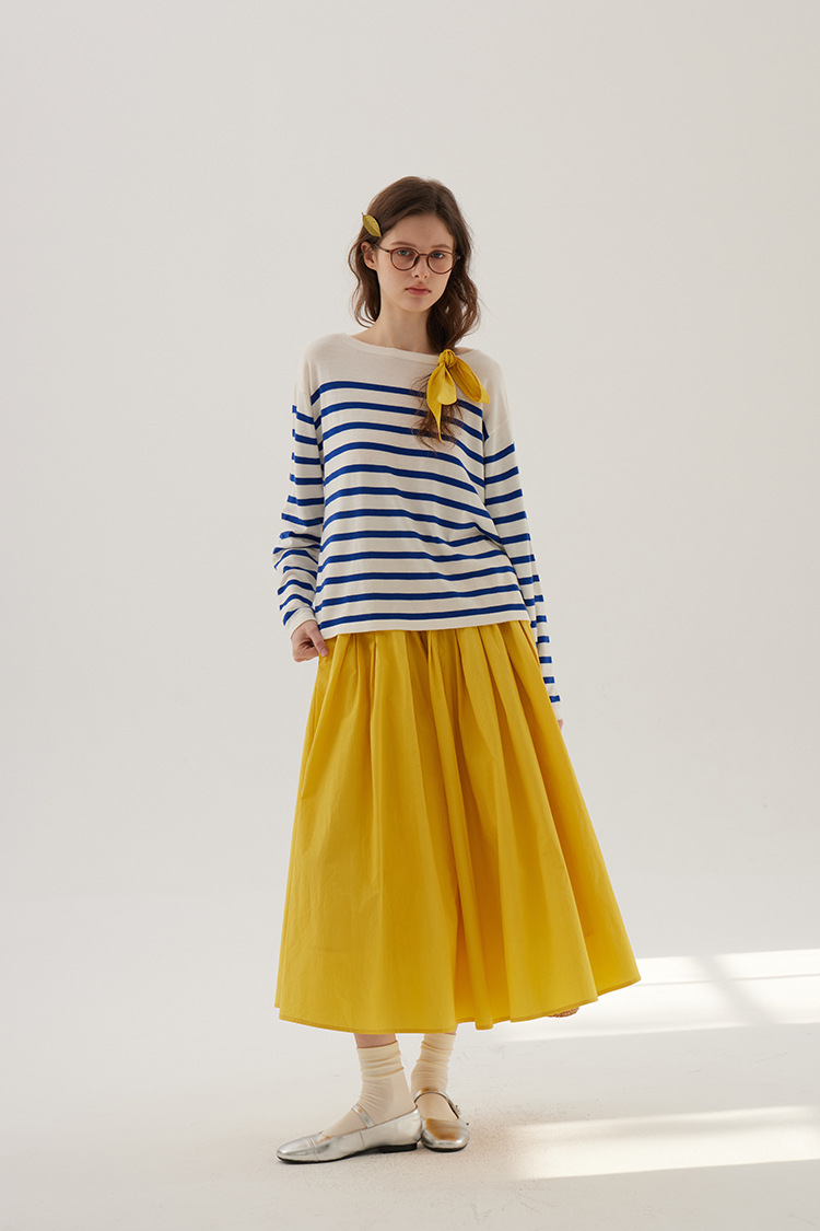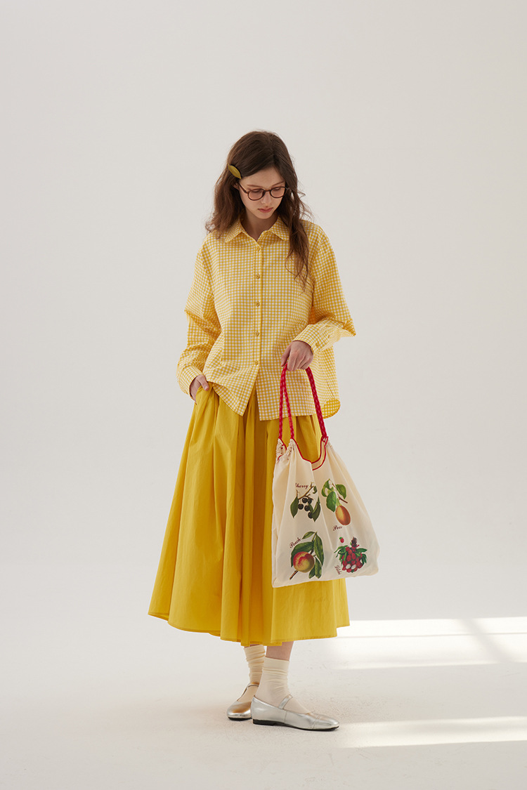 Sullenger 25 가을 밝은 노란색 신강 긴 스테이플 코튼 탄성 주름 대형 스윙 우산 스커트