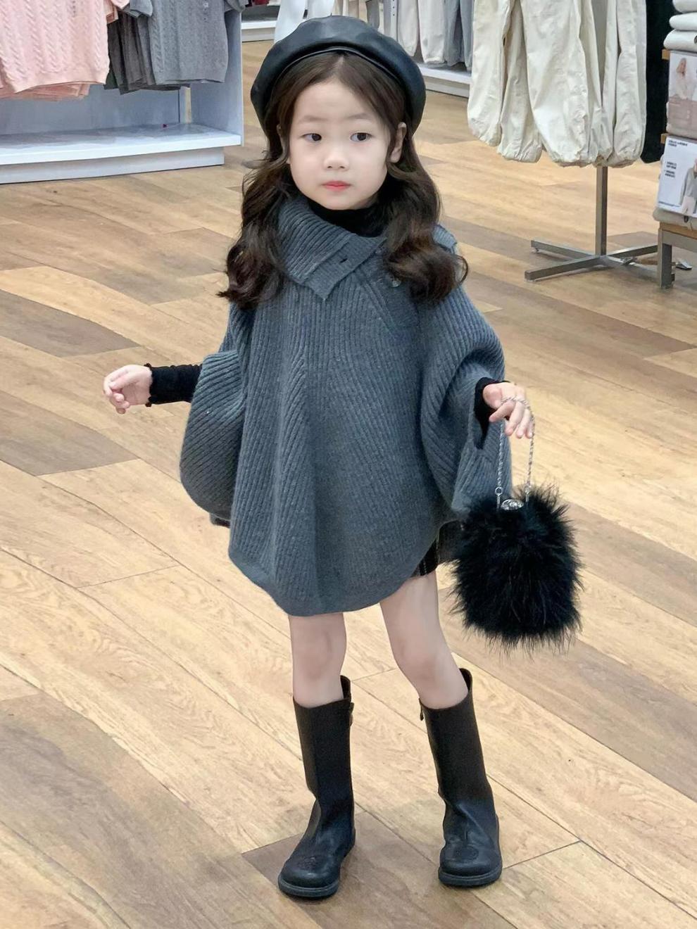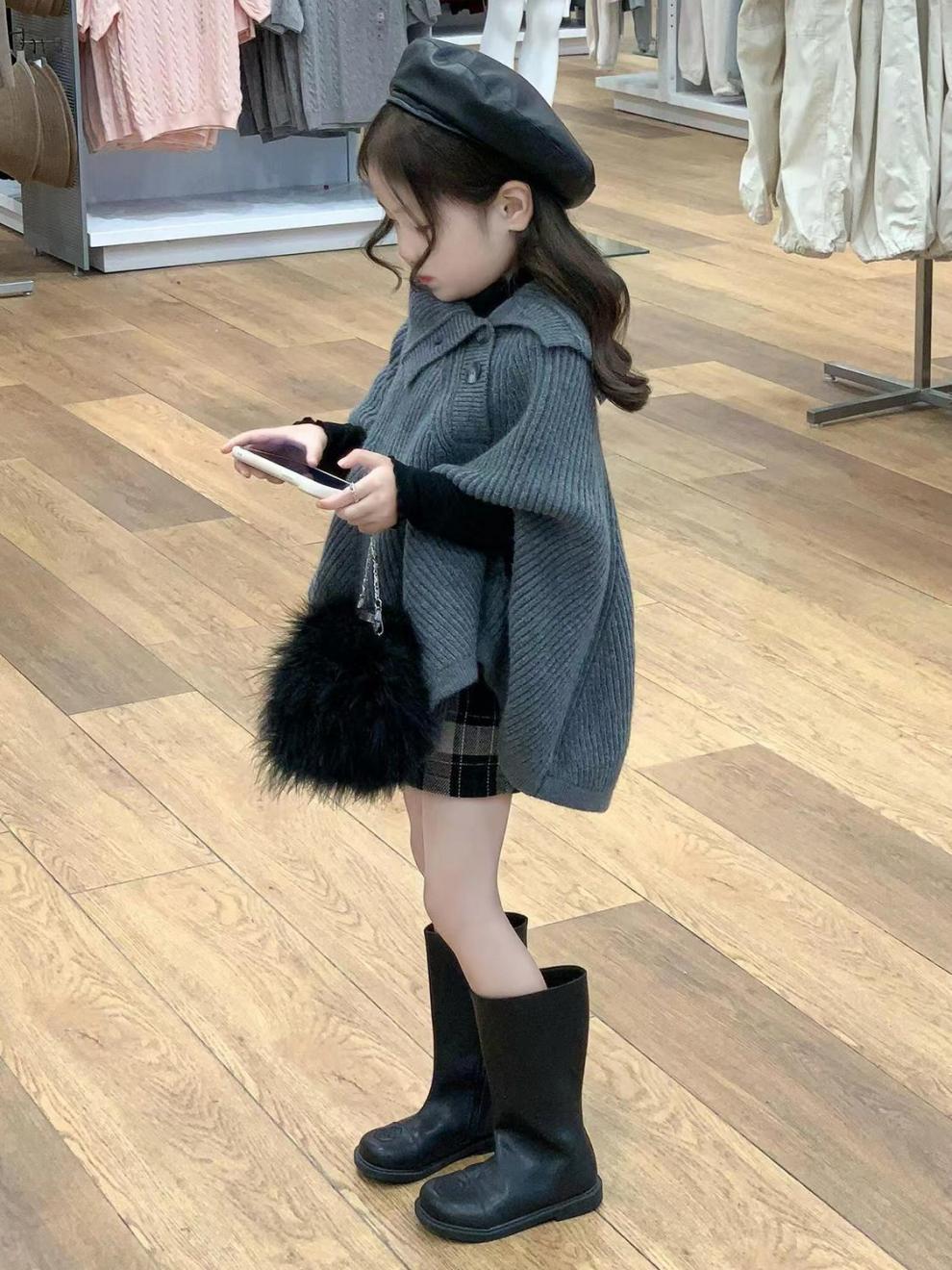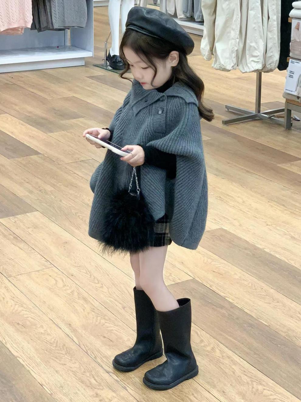 한국 스타일 소녀 2025 봄 새 그레이 핏 케이프 재킷 큰 어린이 흑백 격자 무늬 스커트 세트스토어 가기