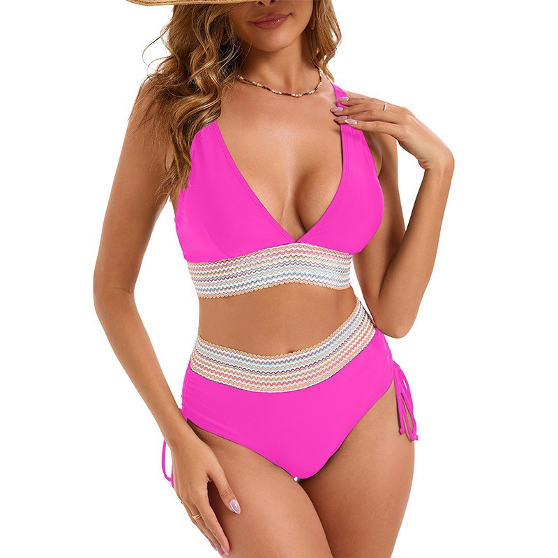 2025 솔리드 컬러 섹시 딥 V 비키니 수영복 여성 국경을 넘는 대외 무역 타이트한 스파이스 걸스 수영복 국경 간 대외 무역