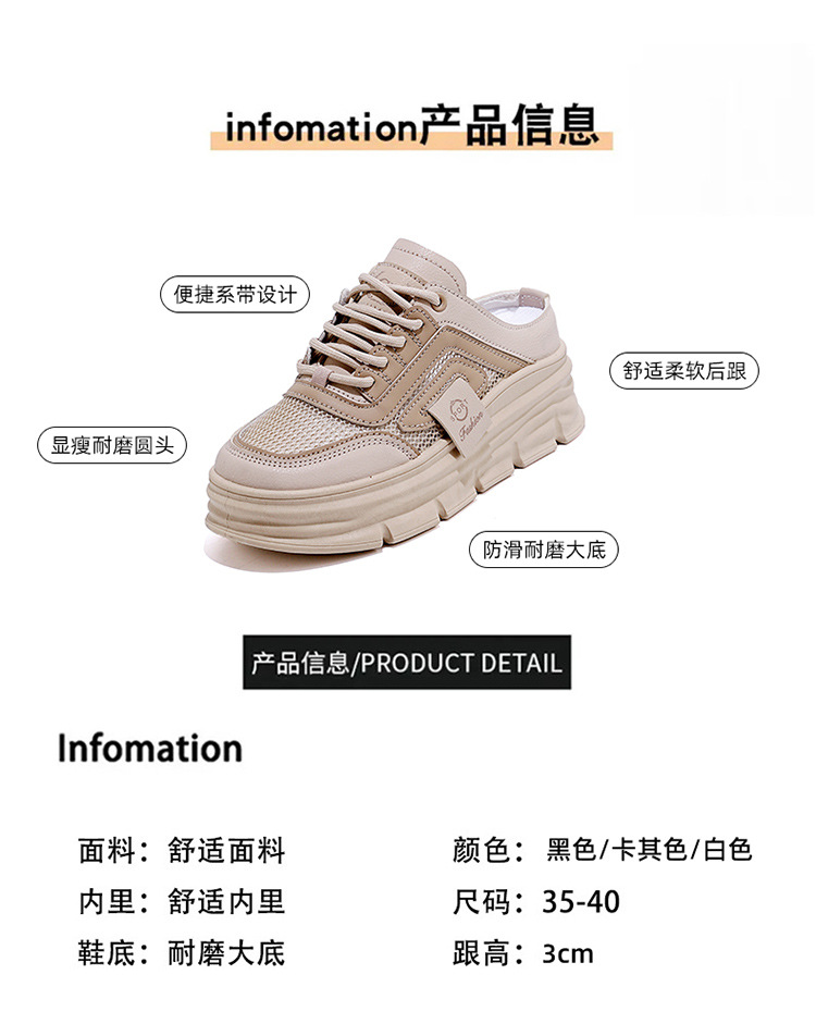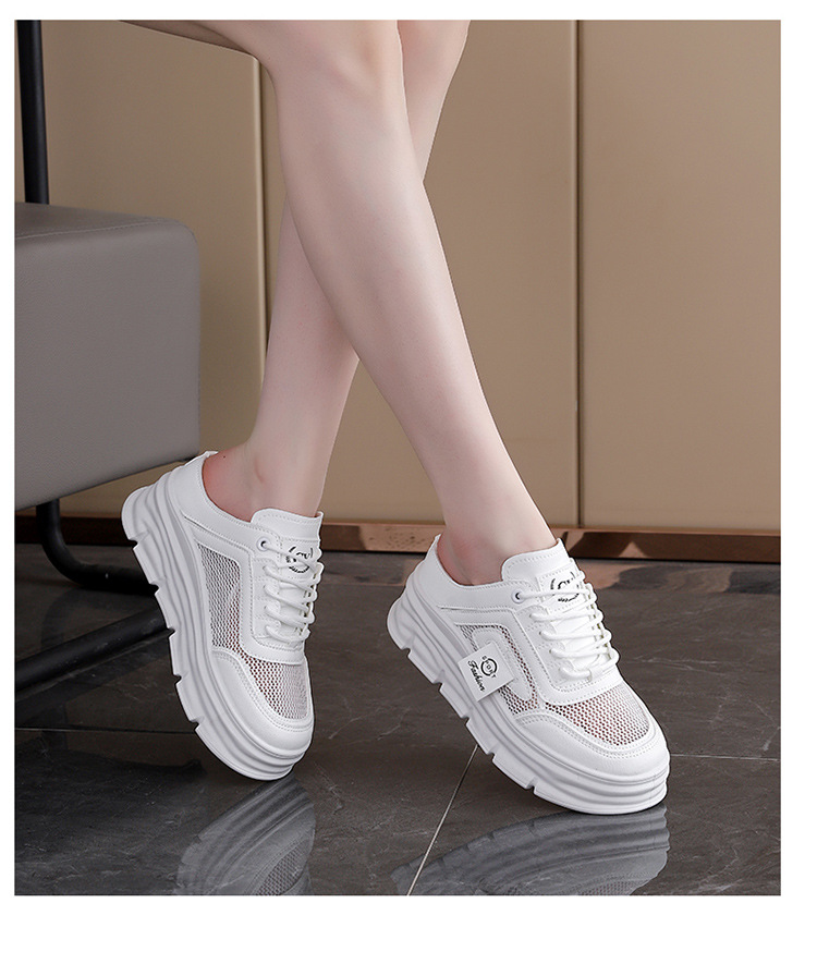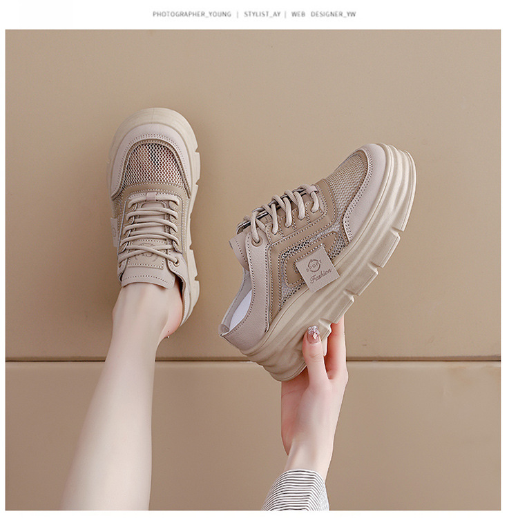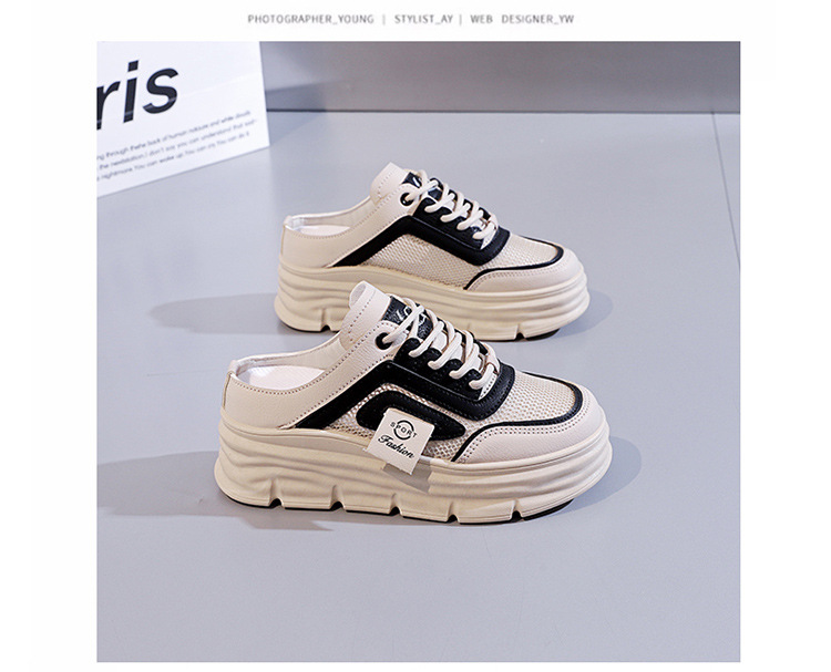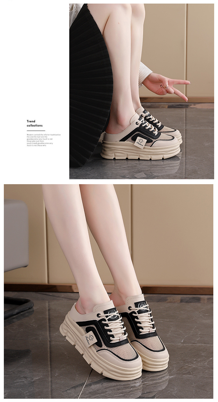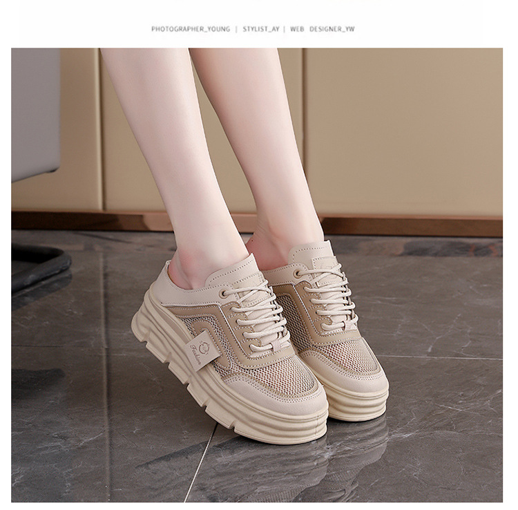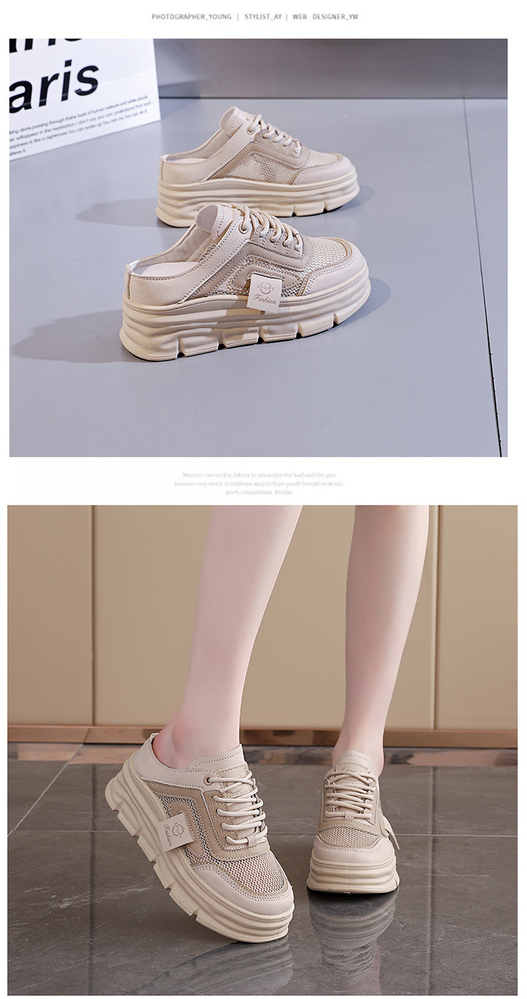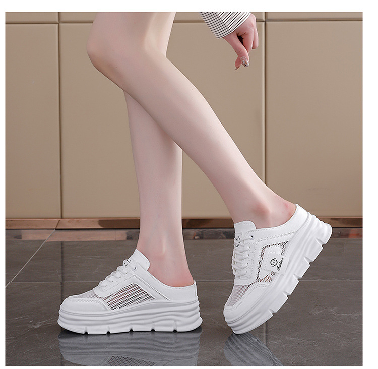 새로운 세미 드래그 메쉬 여성 신발 2025 봄과 여름 통기성 높이 증가 두꺼운 밑창 캐주얼 신발 패션 슬리퍼 CY-711