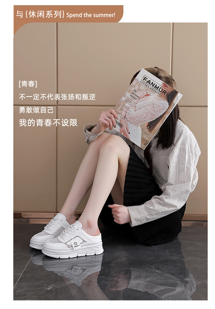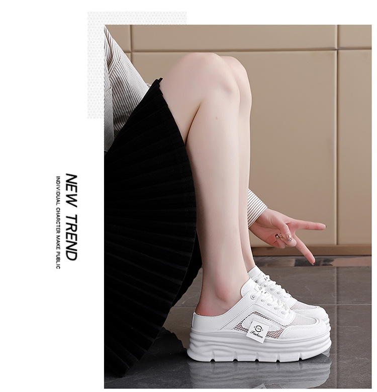 새로운 세미 드래그 메쉬 여성 신발 2025 봄과 여름 통기성 높이 증가 두꺼운 밑창 캐주얼 신발 패션 슬리퍼 CY-711스토어 가기