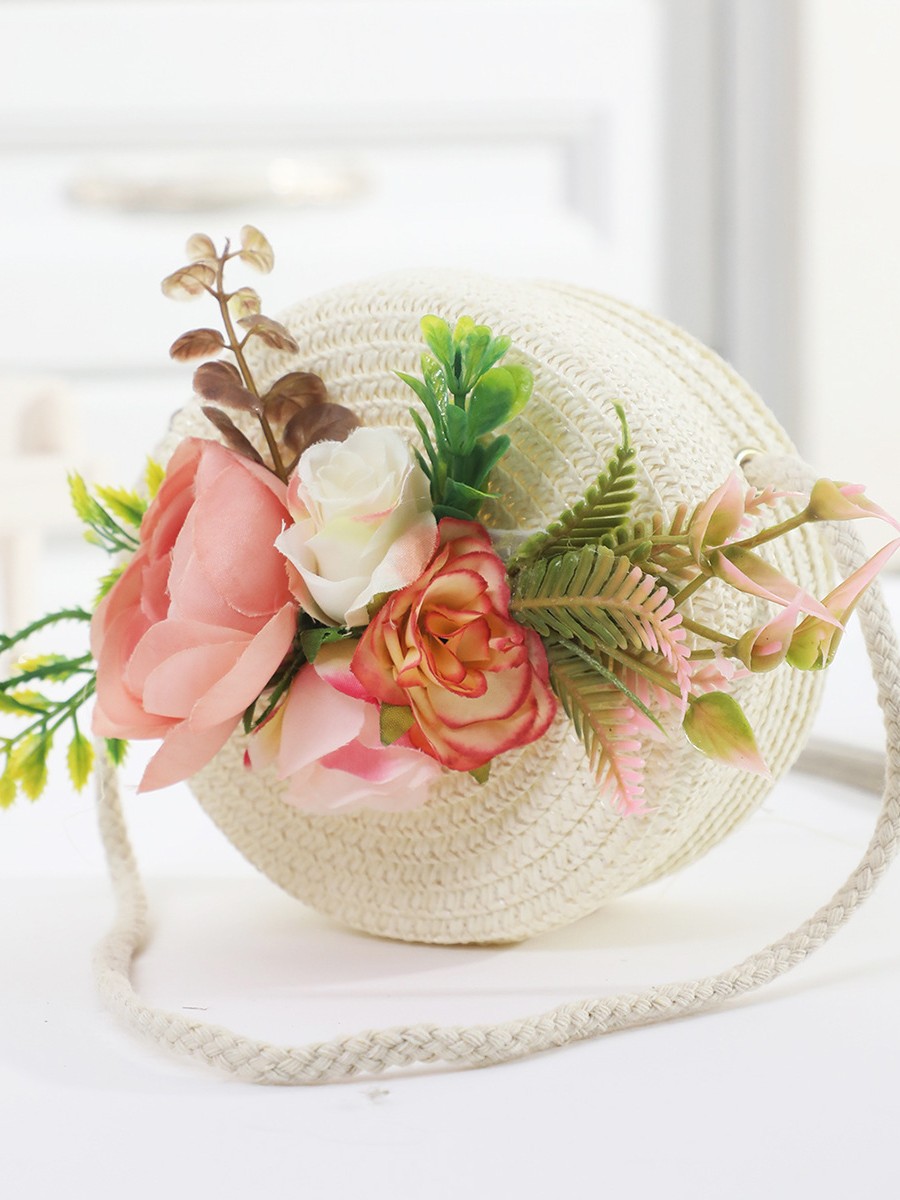 • 밧줄로 짠 크고 하얀 꽃 작은 둥근 가방 흰색