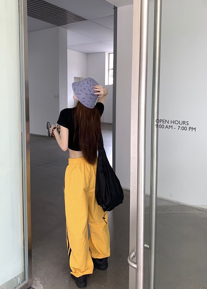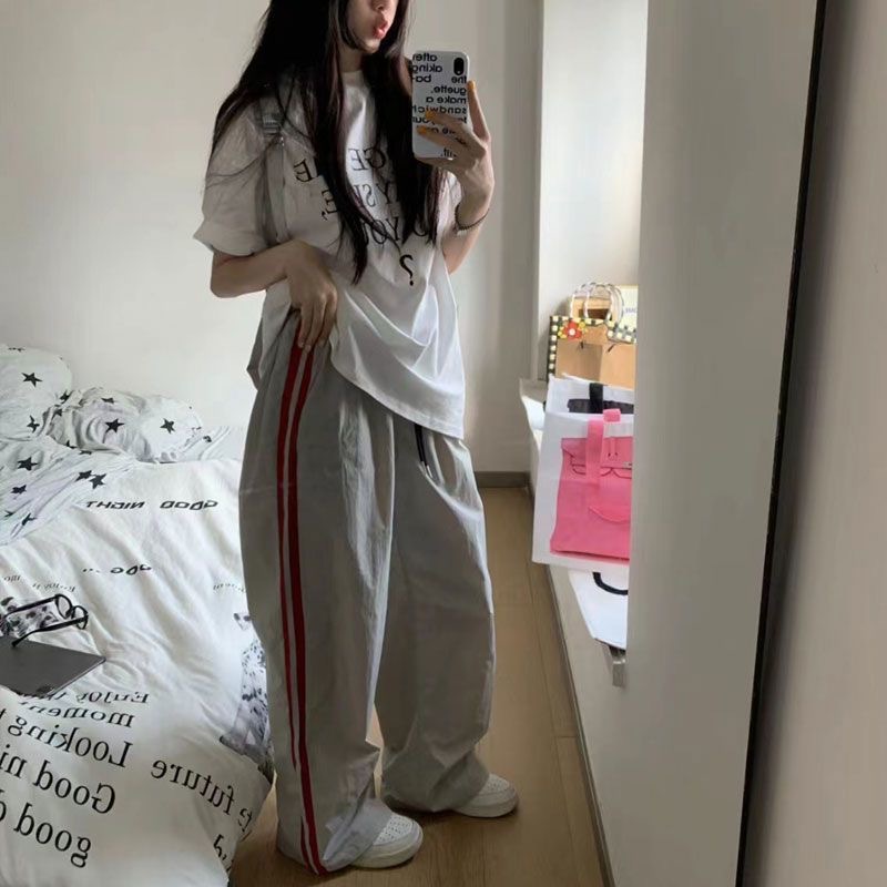 미국 줄무늬 스포츠 바지 여자 봄과 가을 2025 새로운 느슨한 넓은 다리 캐주얼 얇은 작업복 바지 홍콩 맛
