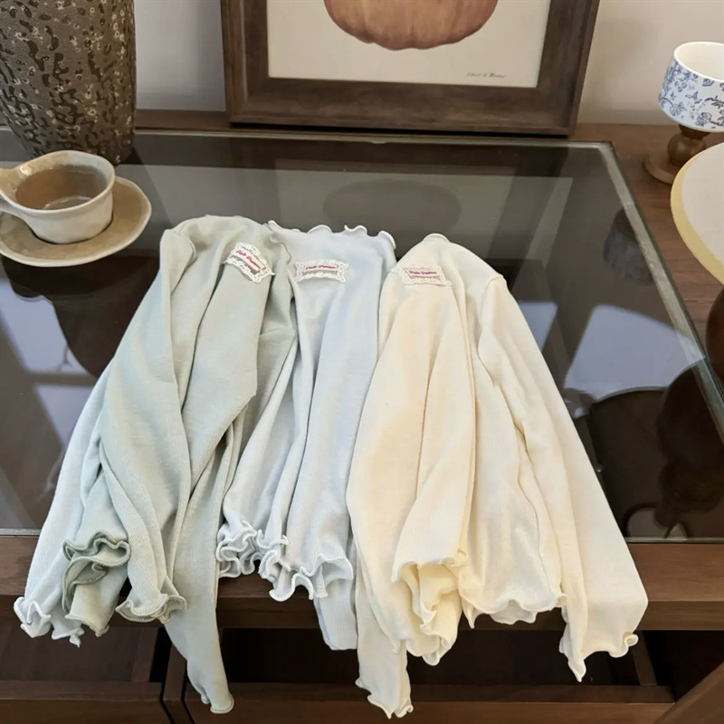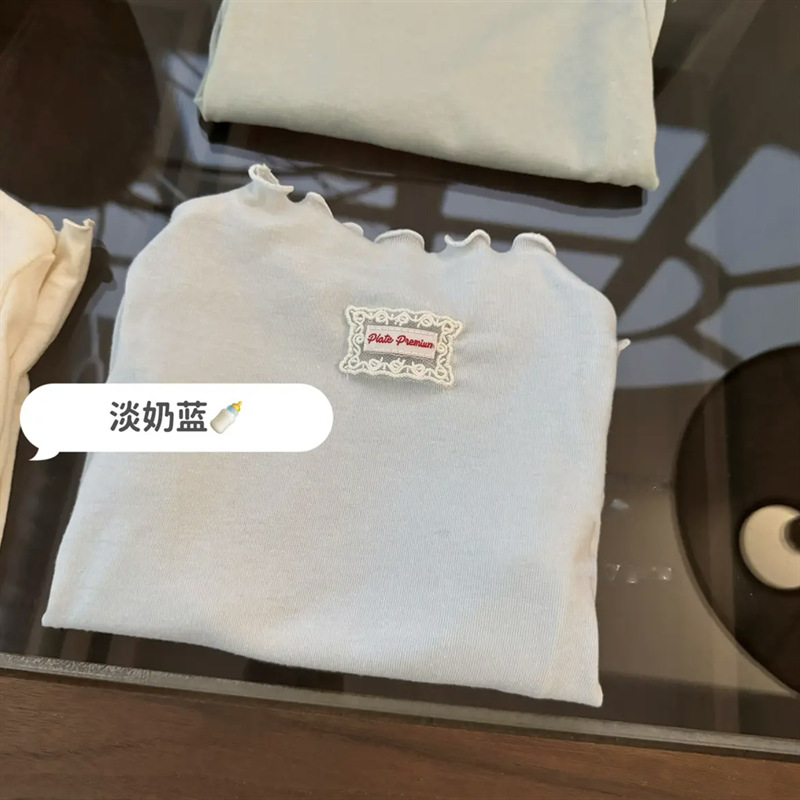 Xiaoxian Ning 여아 레이스 칼라 귀단 마카롱 솔리드 컬러 바텀 셔츠 새로운 한국 스타일 여아 긴팔 티셔츠스토어 가기