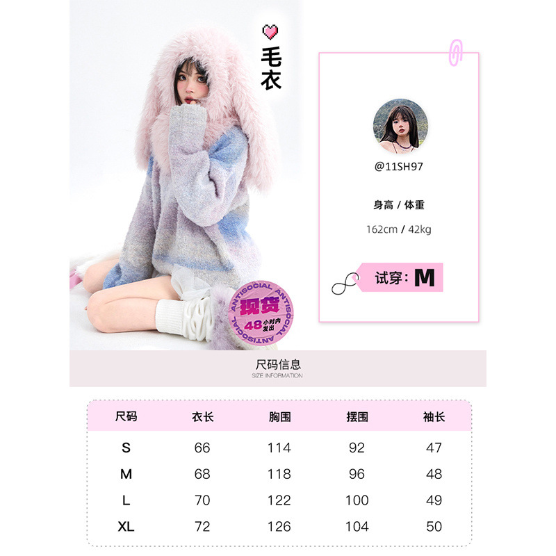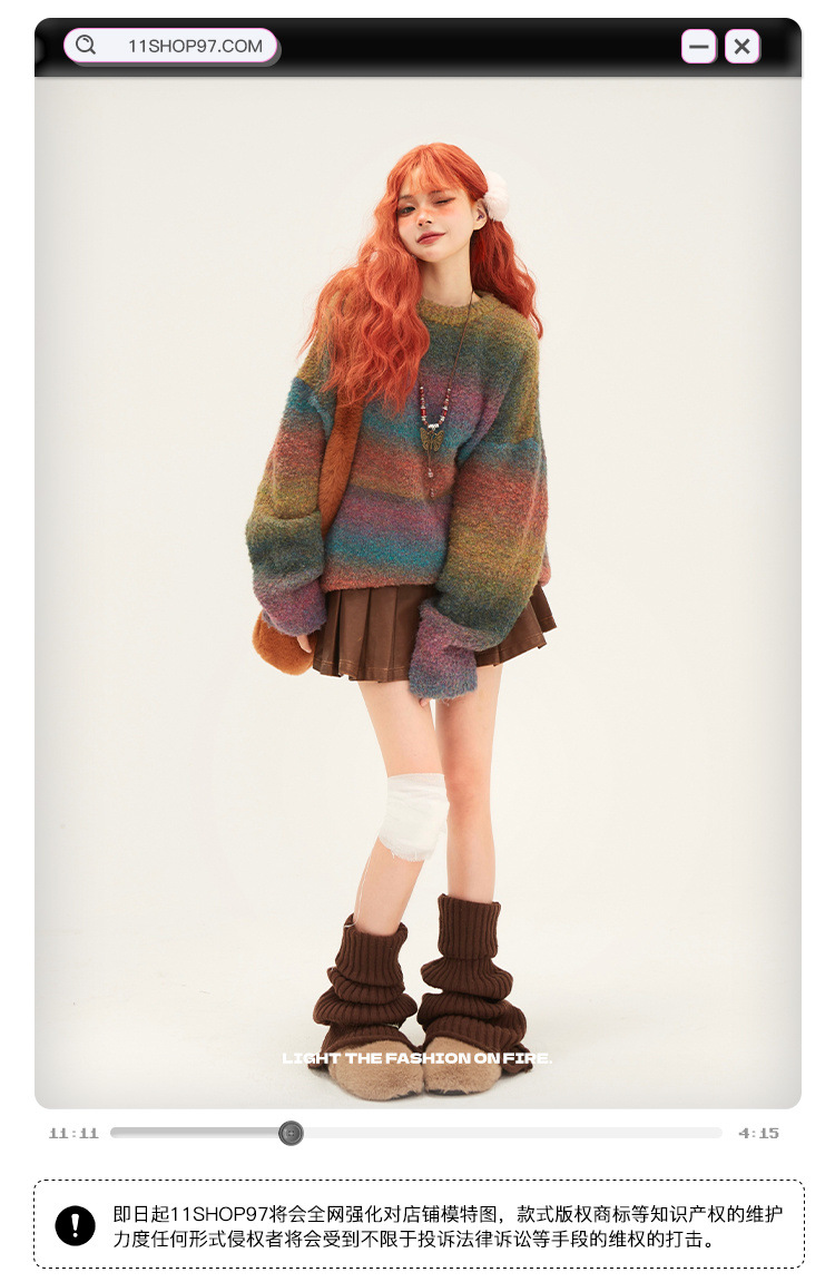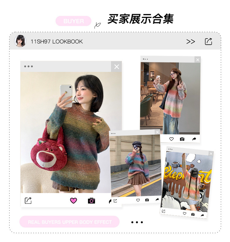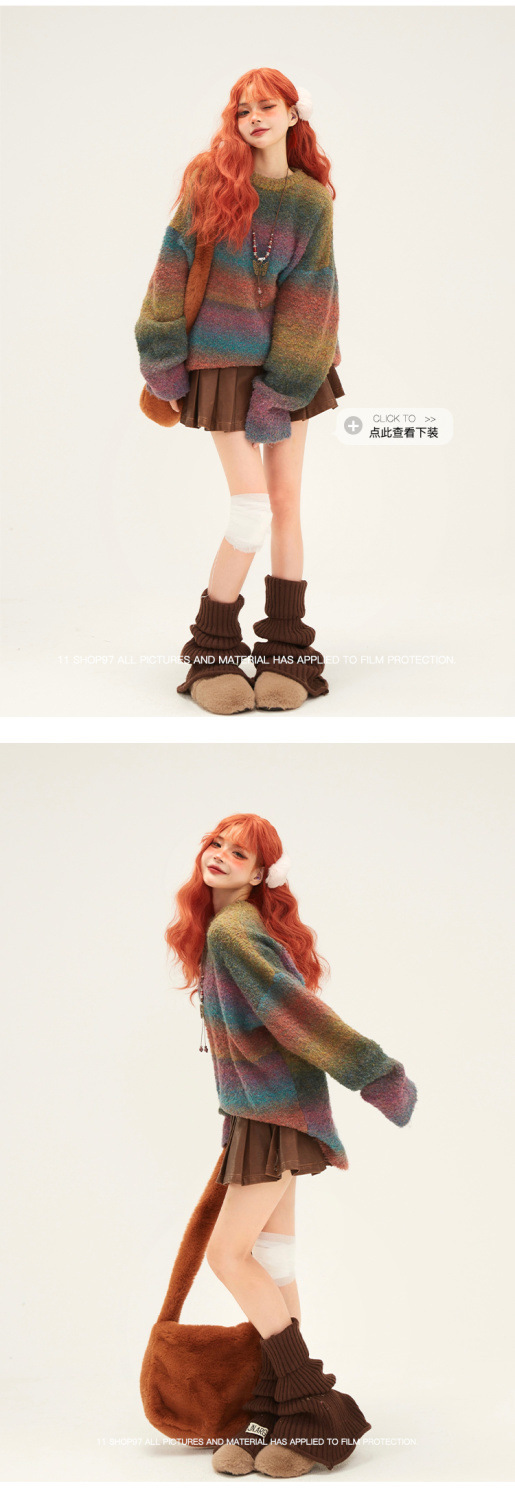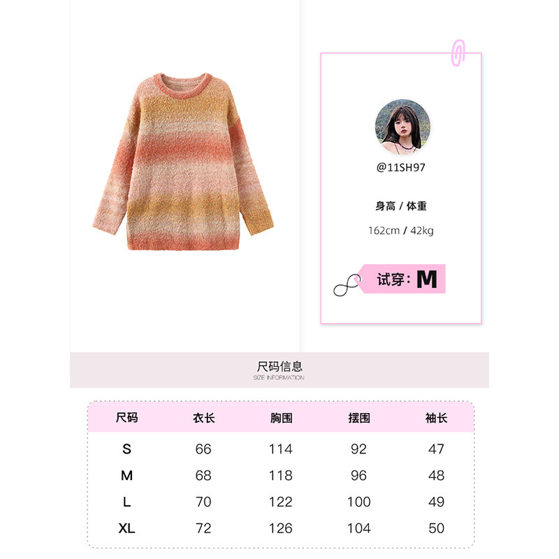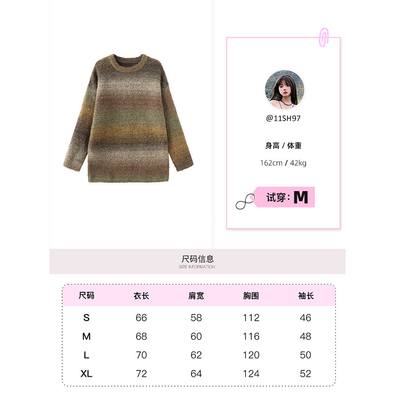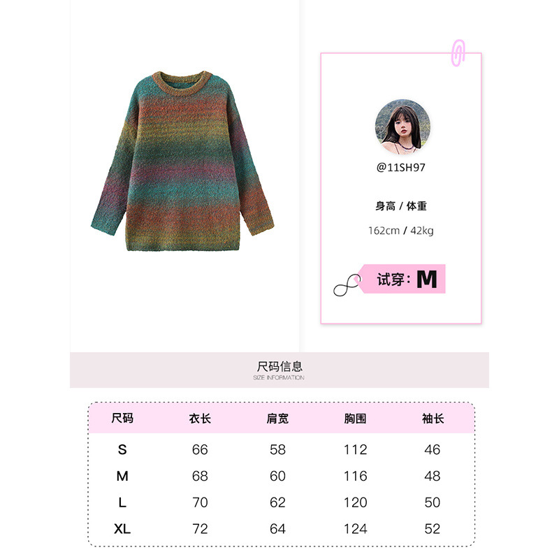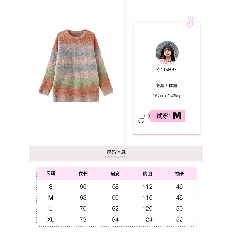 11SH97 소프트 왁스 게으른 스타일 스웨터 여성의 가을과 겨울 새로운 레트로 마일러 레인보우 그라디언트 스웨터 탑스토어 가기
