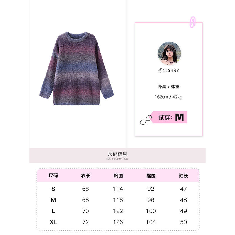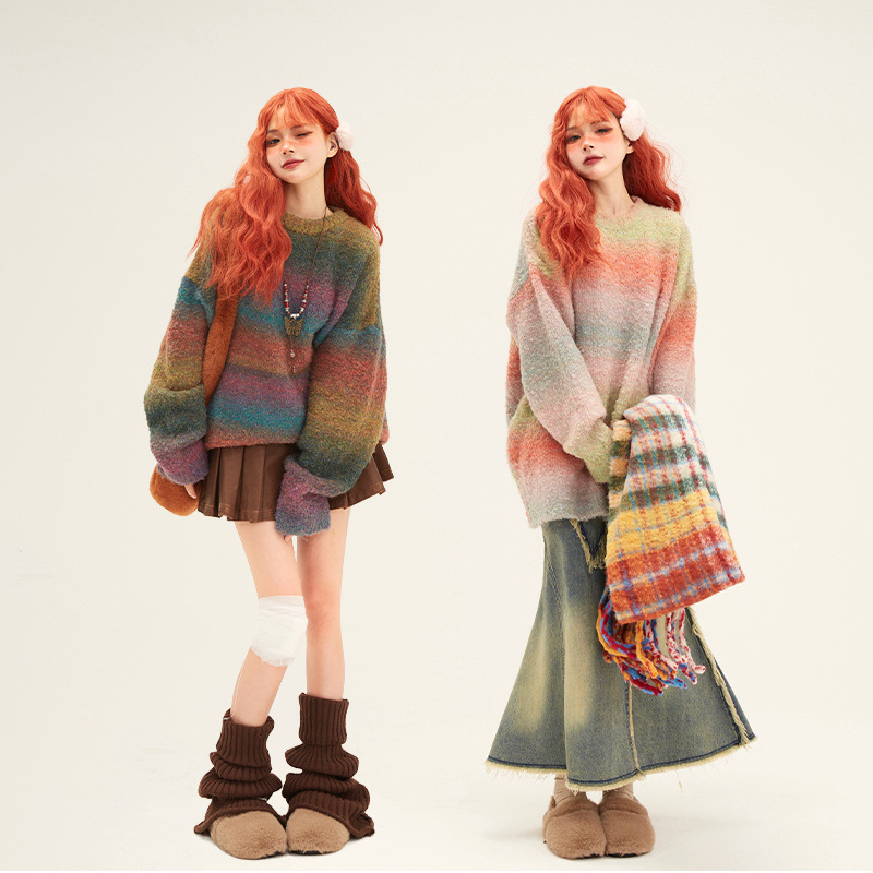 11SH97 소프트 왁스 게으른 스타일 스웨터 여성의 가을과 겨울 새로운 레트로 마일러 레인보우 그라디언트 스웨터 탑
