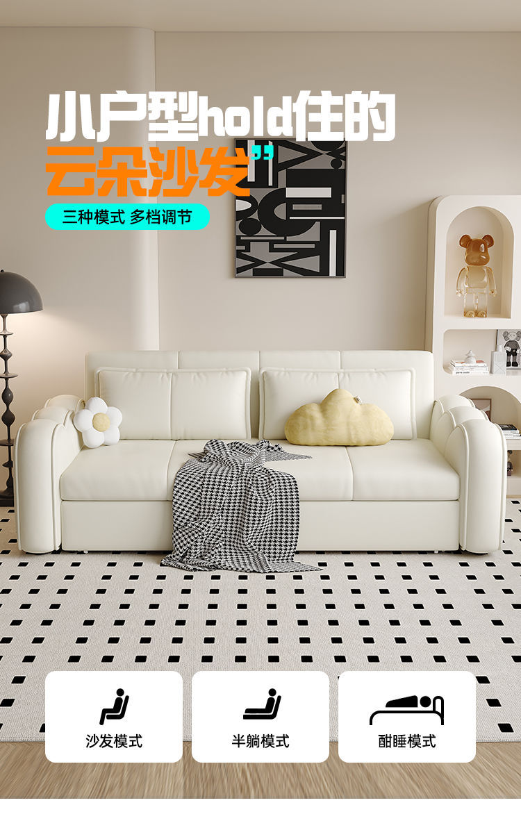 현대 미니멀리스트 작은 아파트 좌석 및 Liater 다기능 접이식 이중 사용 소파 거실 보관 침실 고양이 클로 가죽 소파 침대스토어 가기