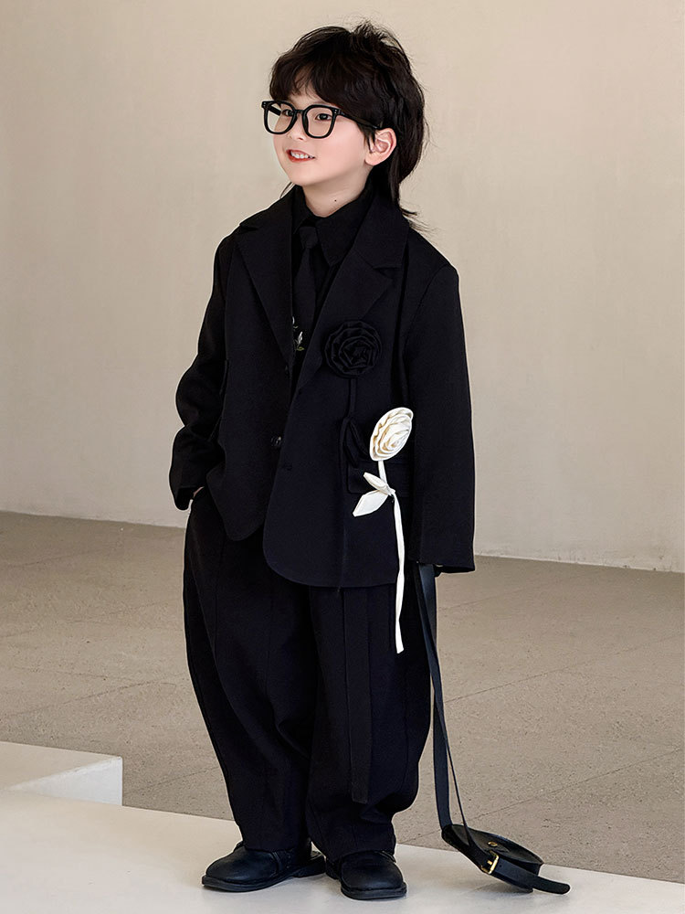 • 25117 블랙 슈트 커버(탑+바지) + 코사지