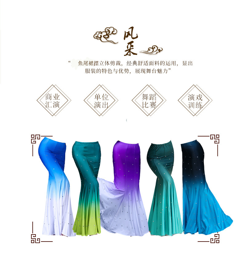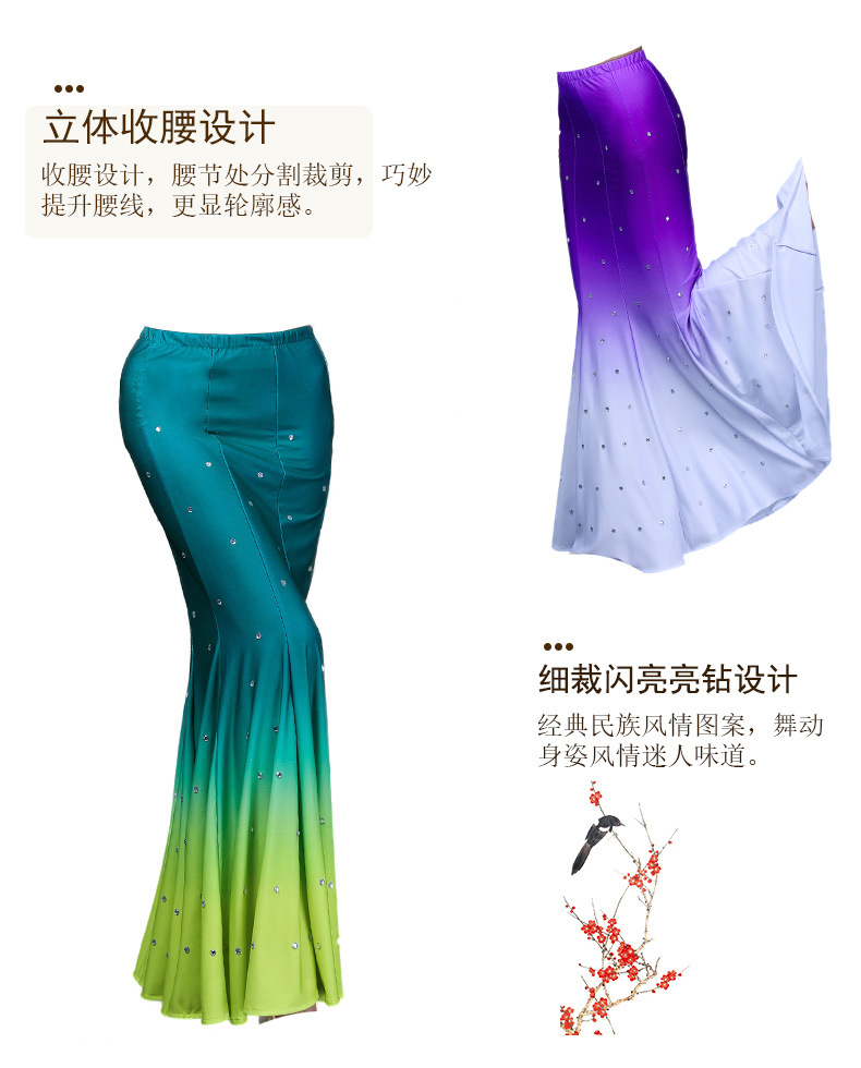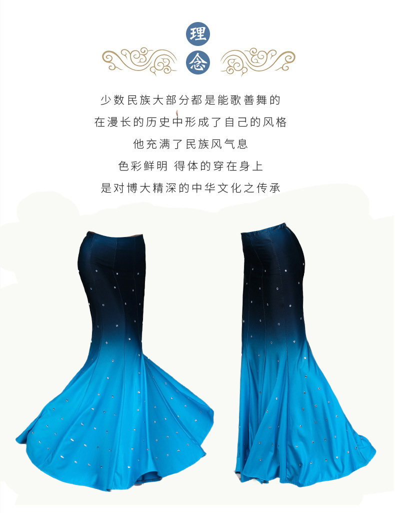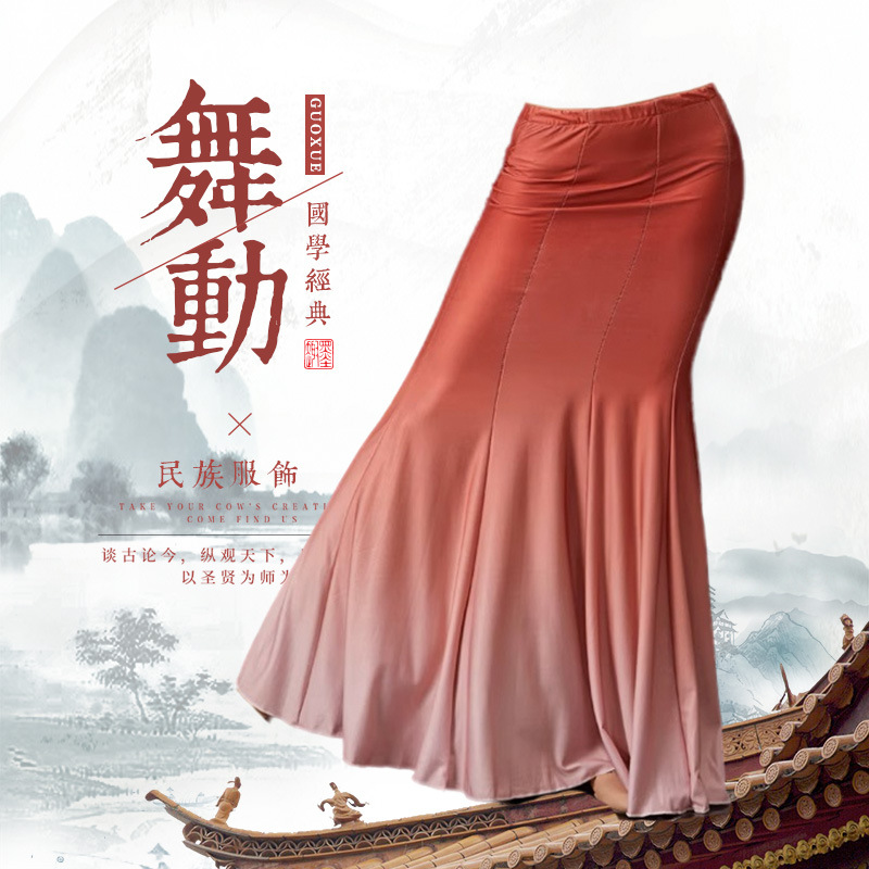 다이 댄스 스커트 어린이 성인 연습 긴 스커트 민족 스커트 그라디언트 새로운 스타일