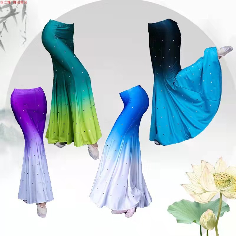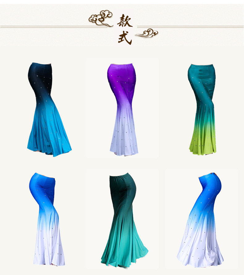 다이 댄스 스커트 어린이 성인 연습 긴 스커트 민족 스커트 그라디언트 새로운 스타일스토어 가기