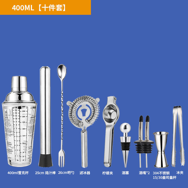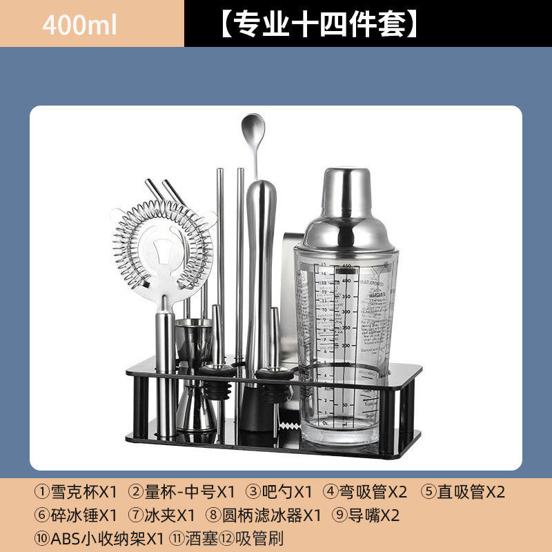 • [14종 세트] 400ml 유리 모델 - 304 소재 셰이커 컵 [미세 연마 및 농축]