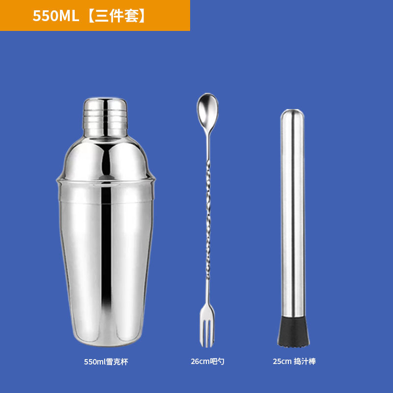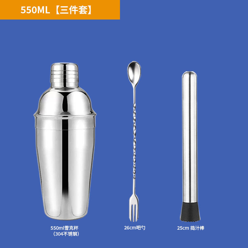 • 550ml 올스틸 컵 + 바 스푼 + 주스 탬핑 스틱 - 스테인리스 칵테일 셰이커 [일반]