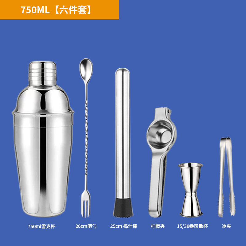 • [6종 세트] 750ml 올스틸 모델 - 스테인리스 칵테일 셰이커 [레귤러]
