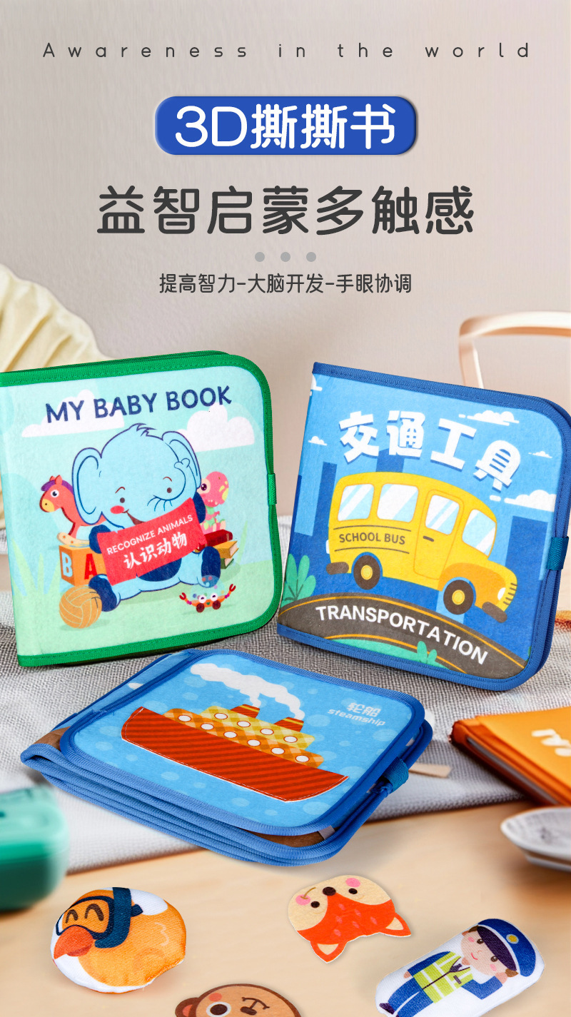 국경 간 눈물은 아기 조용한 천 책 몬테소리 깨달음 조기 교육 아기가 찢을 수 없습니다 눈물 책 펠트 천 장난감스토어 가기