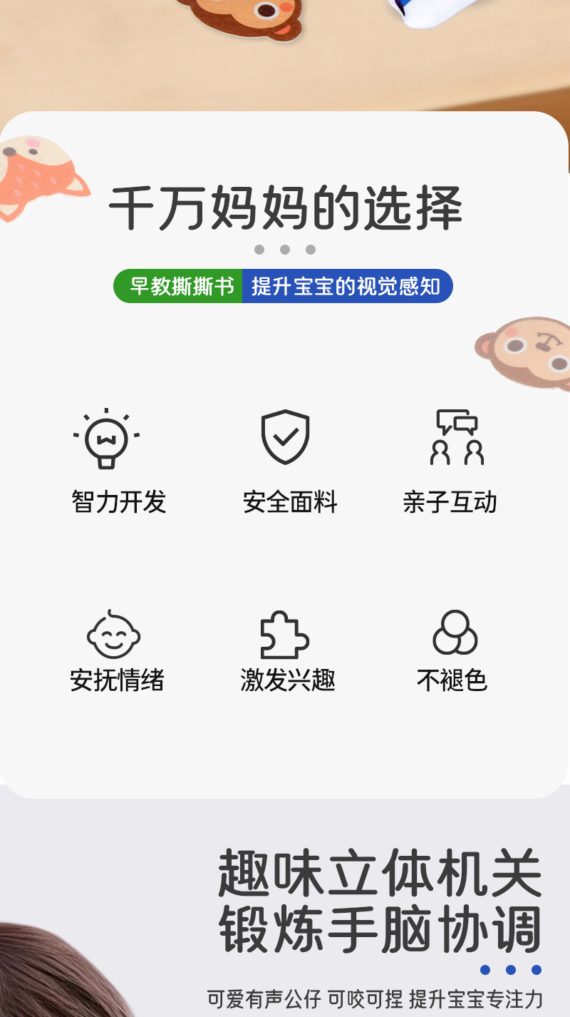 국경 간 눈물은 아기 조용한 천 책 몬테소리 깨달음 조기 교육 아기가 찢을 수 없습니다 눈물 책 펠트 천 장난감