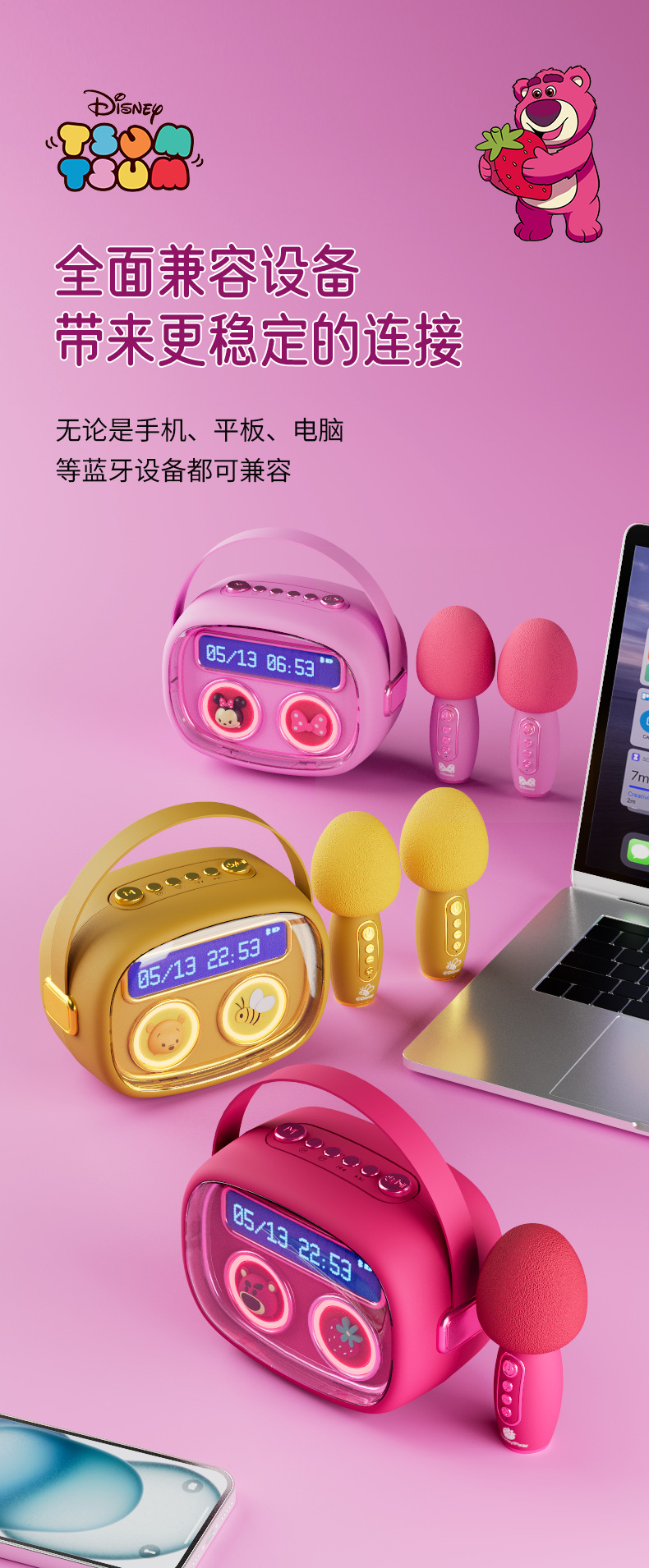 颜色可选: 草莓熊红色 米妮粉色 维尼熊黄色