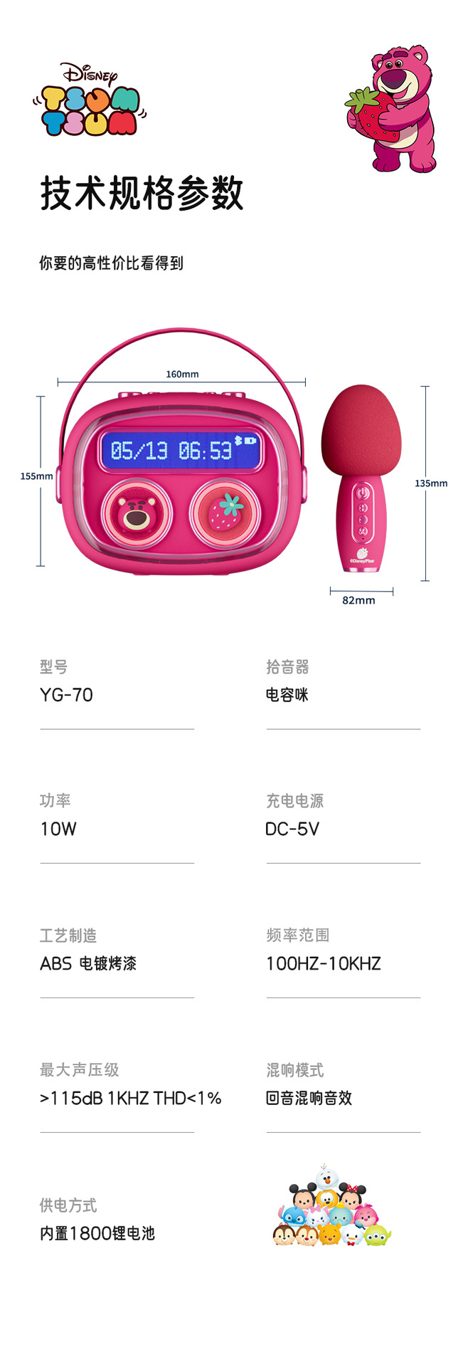音箱尺寸:155*82*160mm 麦克风尺寸:82*135mm