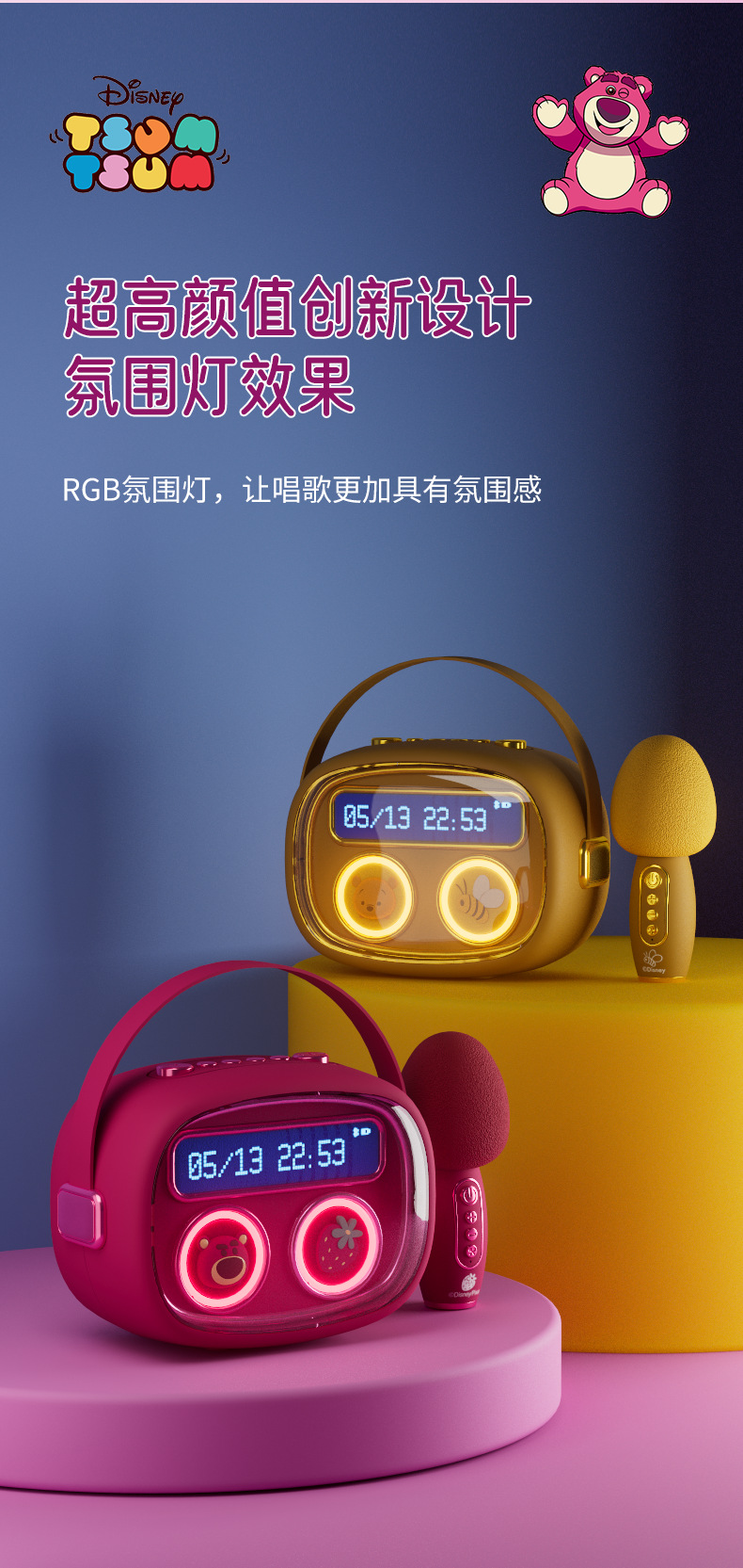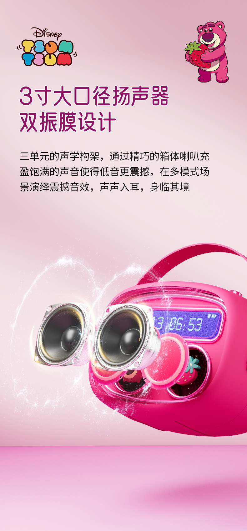 三分频设计3寸扬声器双振膜,律动灯光设计(双振膜背光)