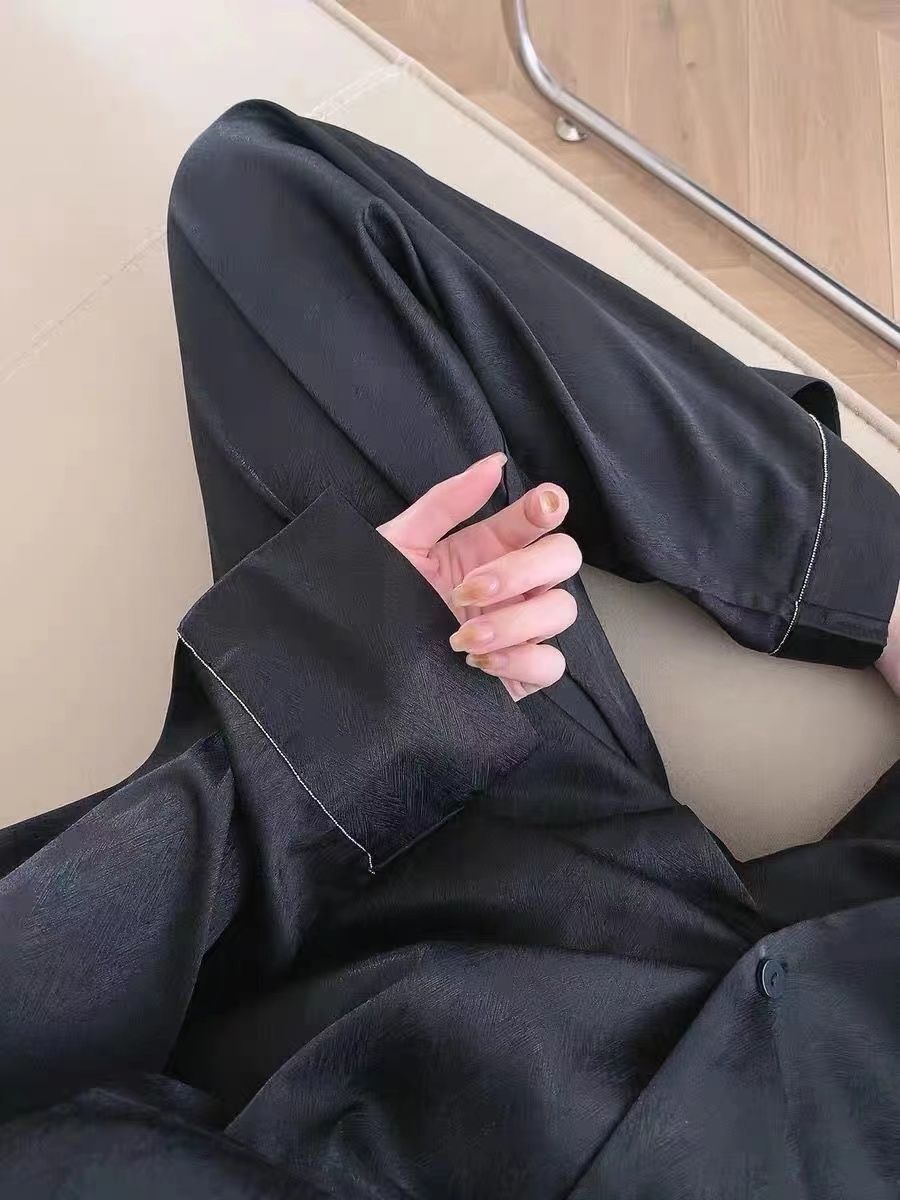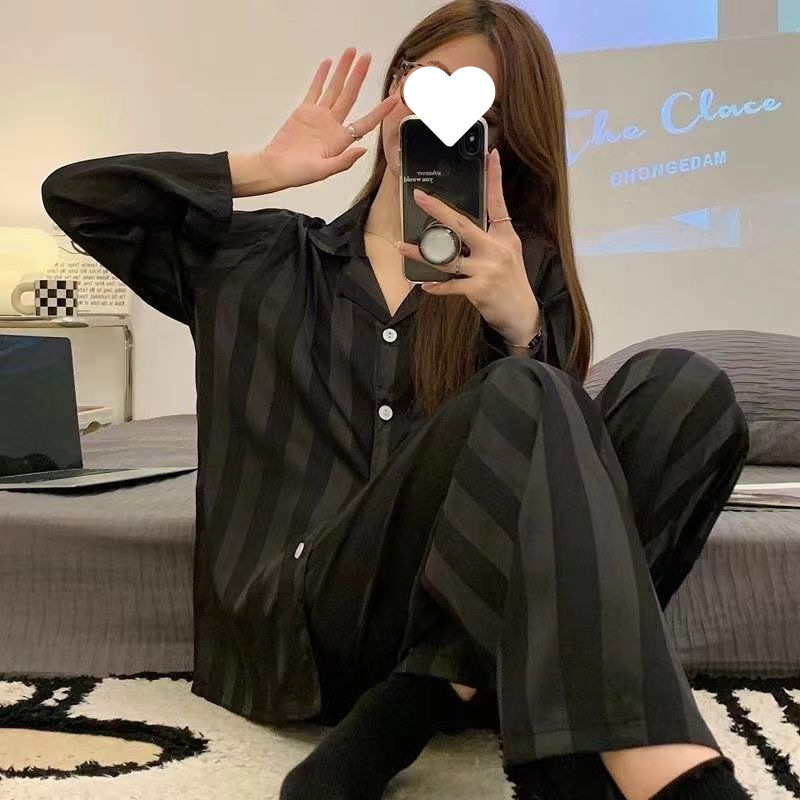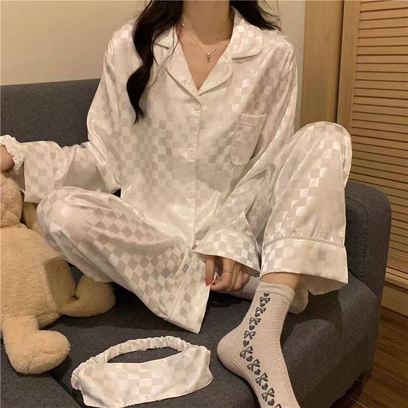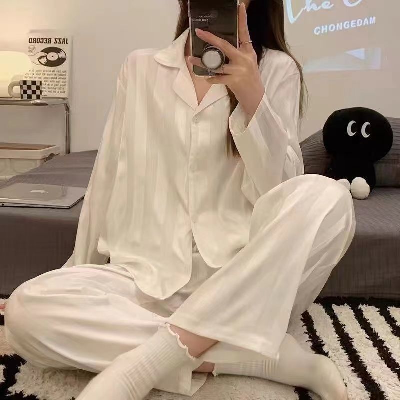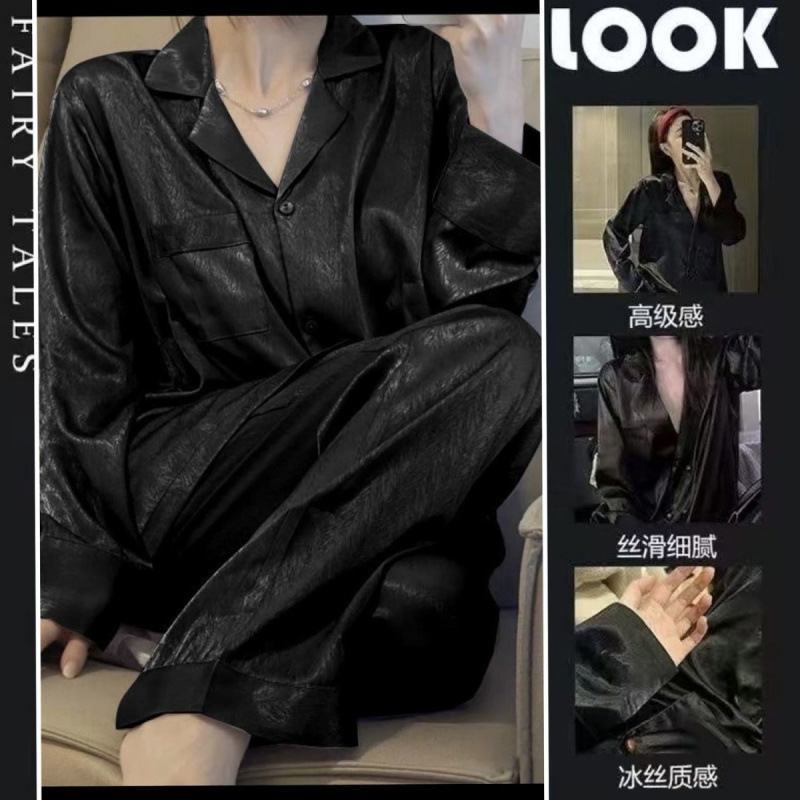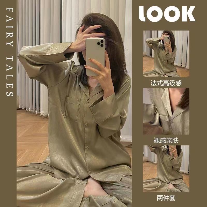 프랑스 하이 엔드 아이스 실크 파자마 여성의 봄과 가을 긴 소매 바지 새로운 Ins 실크 홈 의류 세트 가을스토어 가기