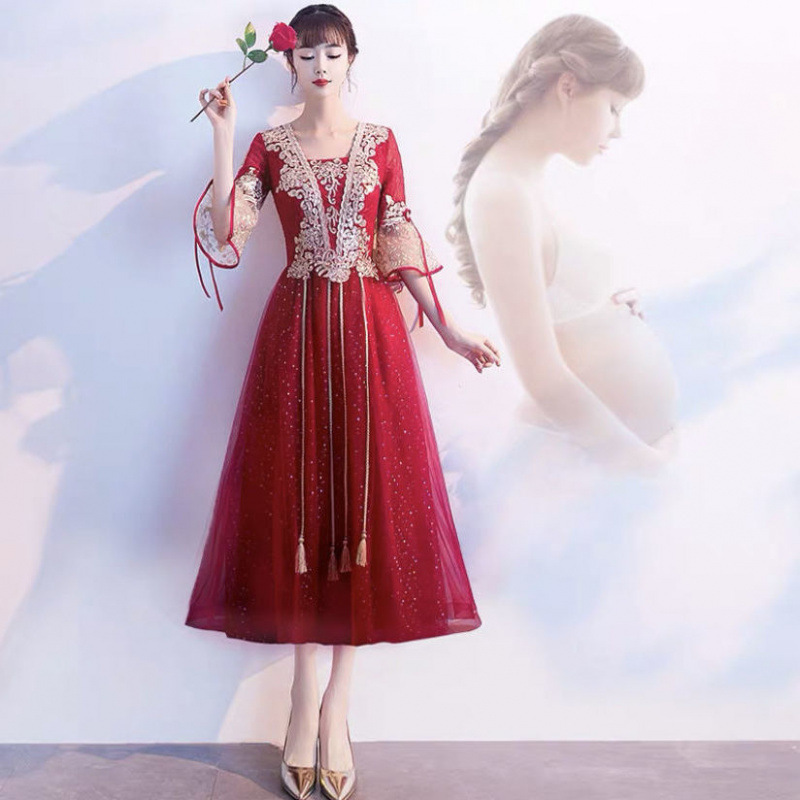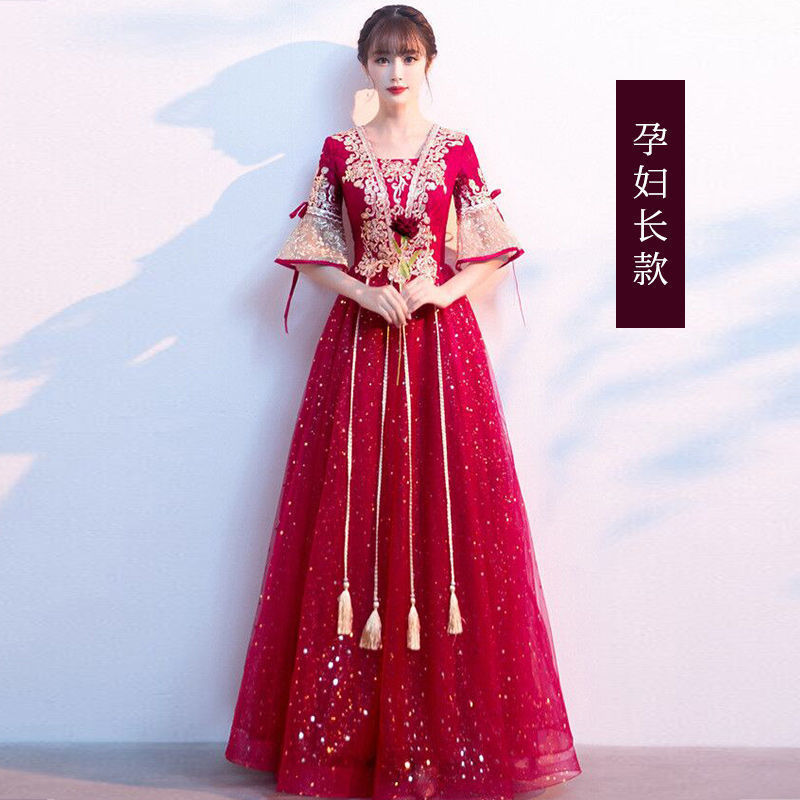 임신 한 여성의 플러스 사이즈 건배 원피스 여성의 2024 새로운 스타일 연회 슬리밍 우아한 우아한 귀족 증가 저녁 원피스 봄