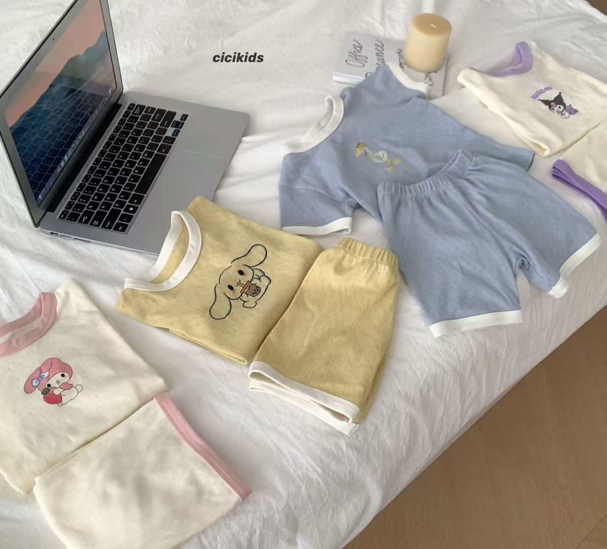어린이 아기 에어컨 의류 호흡 코튼 홈 의류 여름 만화 귀여운 반팔 반바지 세트 소년 소녀를위한 파자마스토어 가기