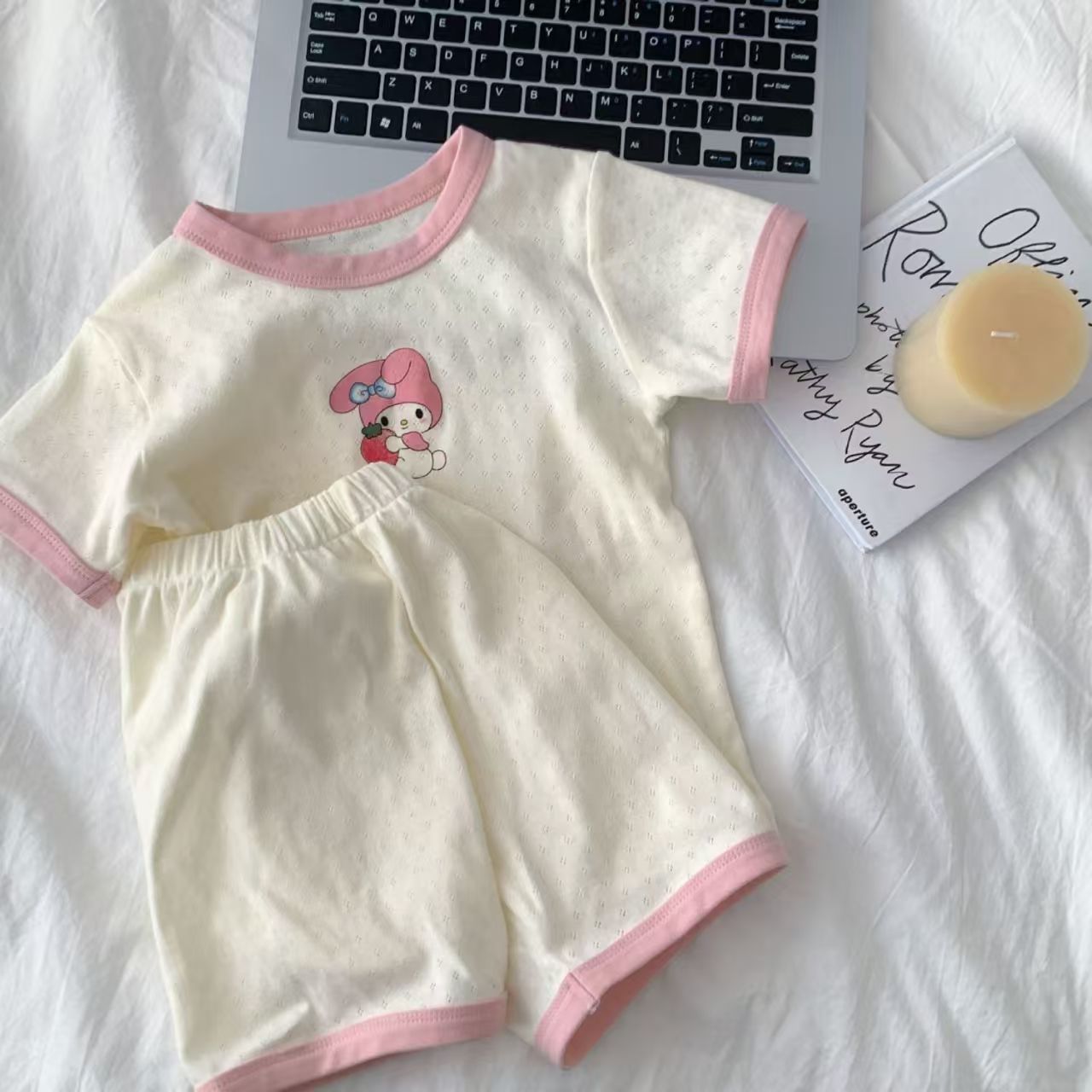 어린이 아기 에어컨 의류 호흡 코튼 홈 의류 여름 만화 귀여운 반팔 반바지 세트 소년 소녀를위한 파자마