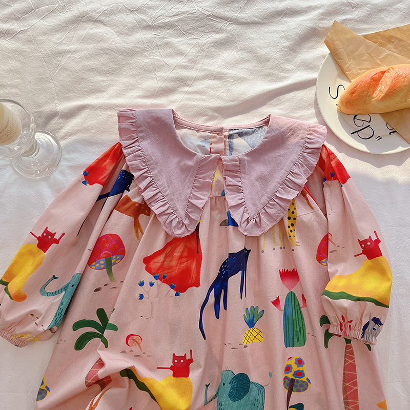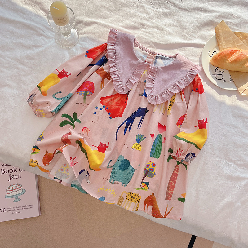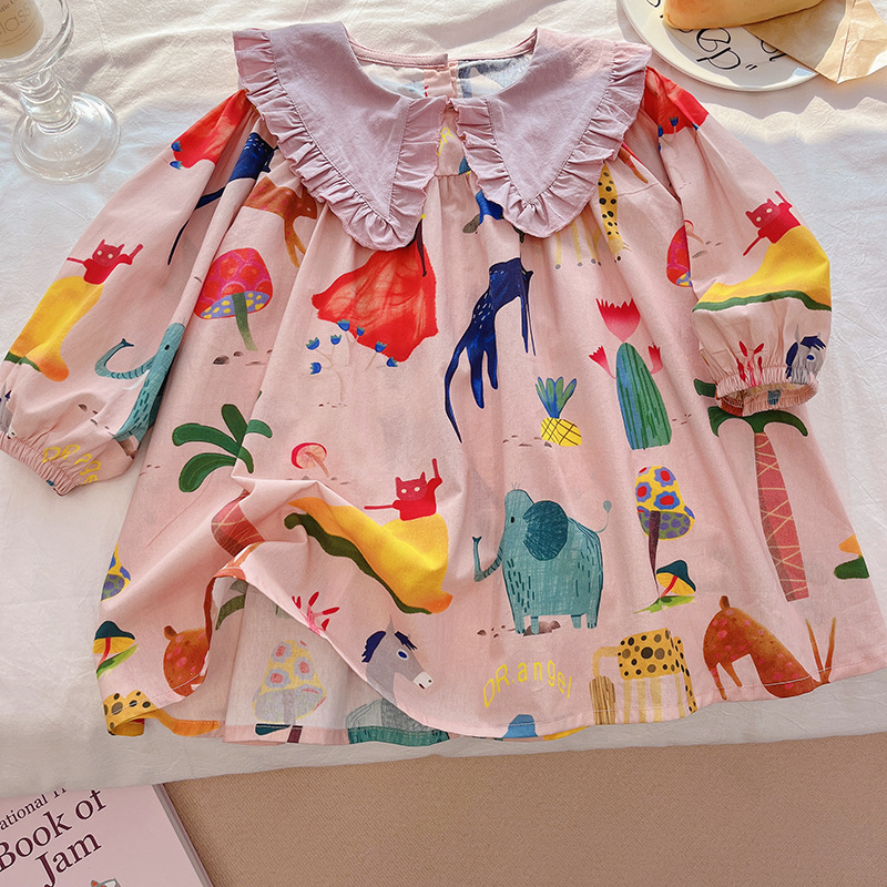 소녀 원피스 봄과 가을 소녀 아기 소녀 세련된 패션 동물 세계 원피스 세련된 폭발 유행스토어 가기