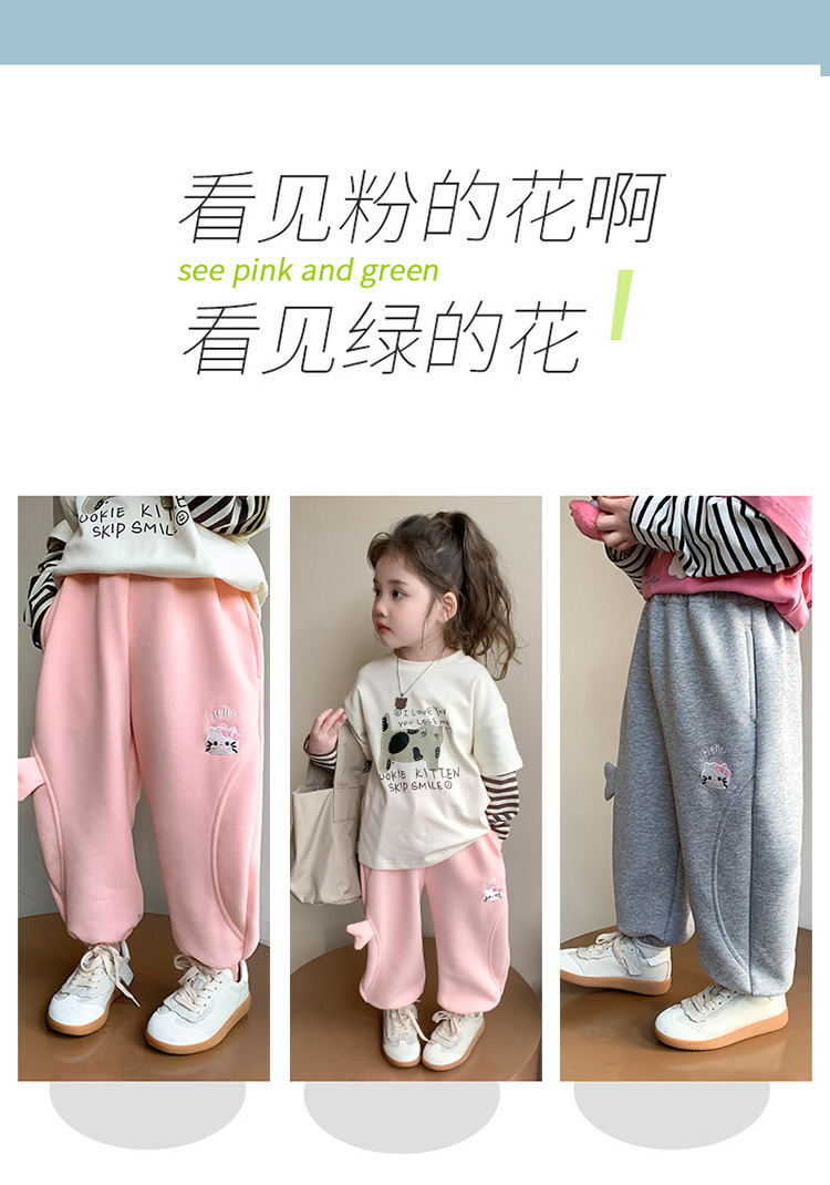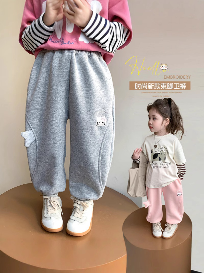 소녀 바지 봄 2025 새로운 스타일 어린이 캐주얼 바지 스포츠 바지 어린이 만화 올 매치 스웨트 팬츠
