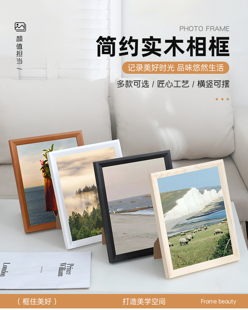 재고 나무 그림 프레임 7 인치 세트 테이블 A4 단단한 나무 사진 프레임 벽 매달려 나무 간단한 사진 앨범 사진 프레임 솔리드 우드스토어 가기