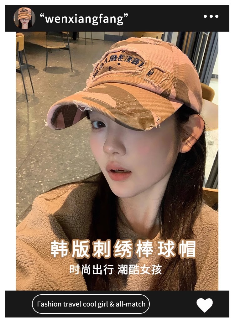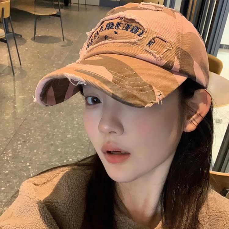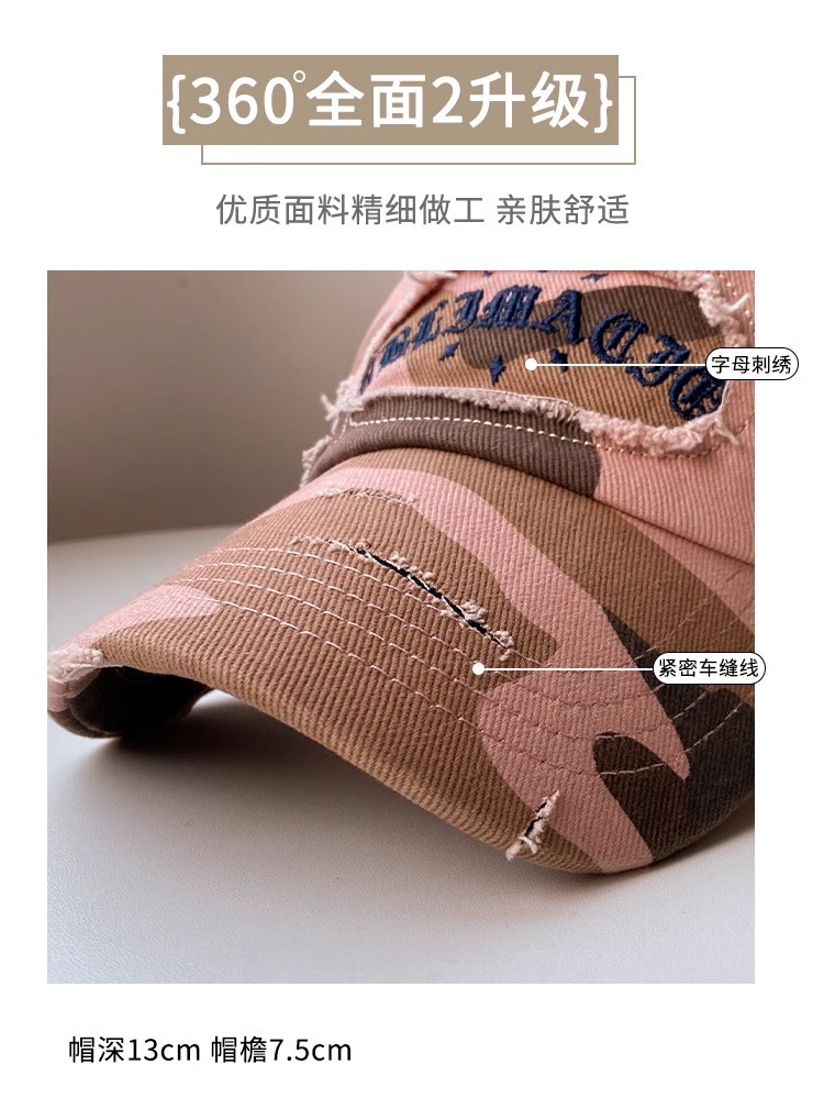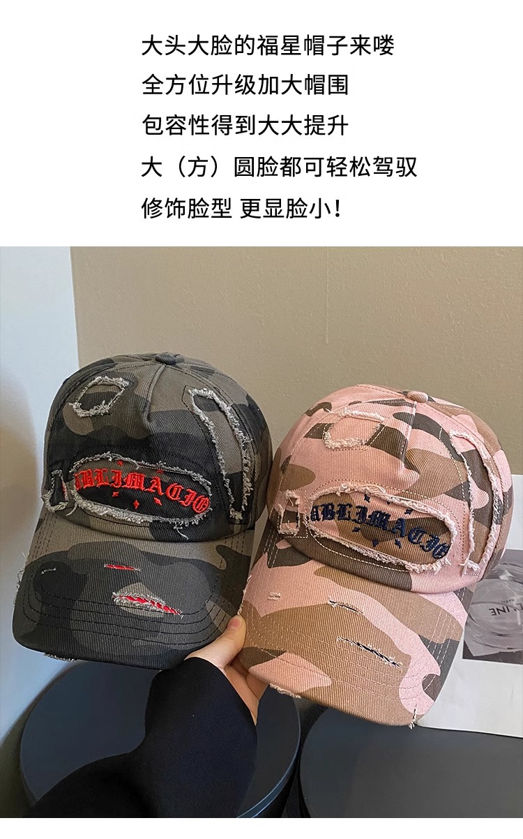 미국 위장 야구 모자 여자 봄과 가을 2025 새로운 큰 브림 쇼 얼굴 작은 증가 심화 소프트 탑 모자스토어 가기