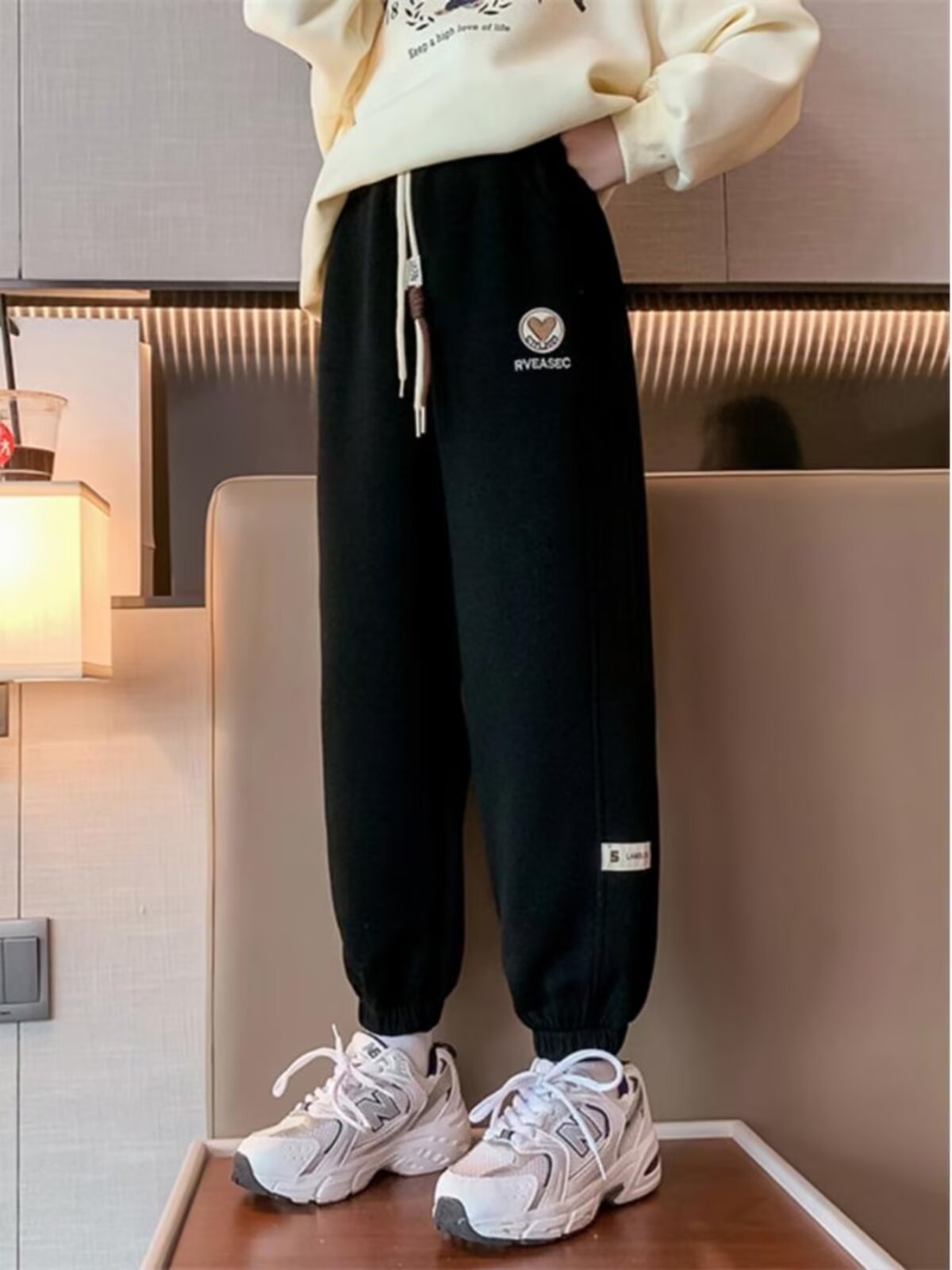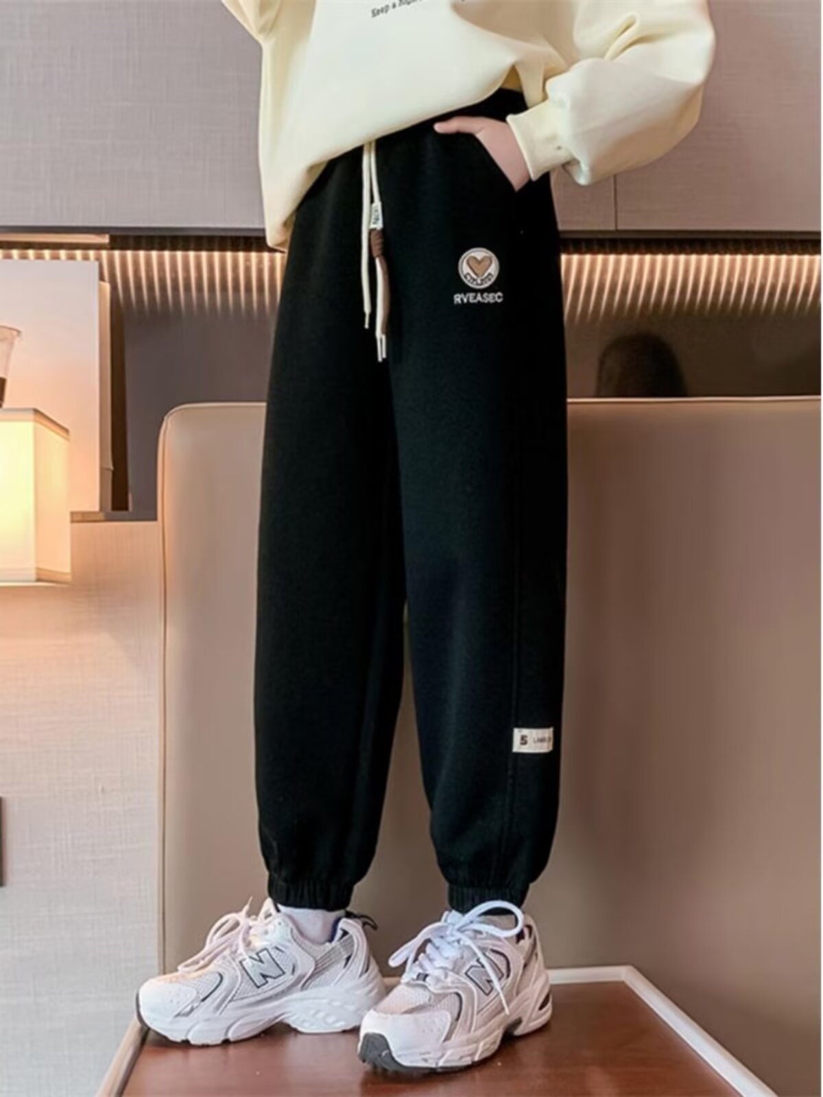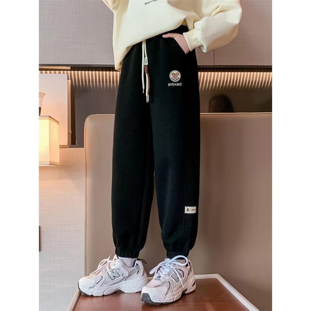 소녀 바지 가을 겨울 2025 새로운 패션 큰 어린이 느슨한 캐주얼 스웨트 팬츠 어린이 발 바인딩 스포츠 바지 정사이즈