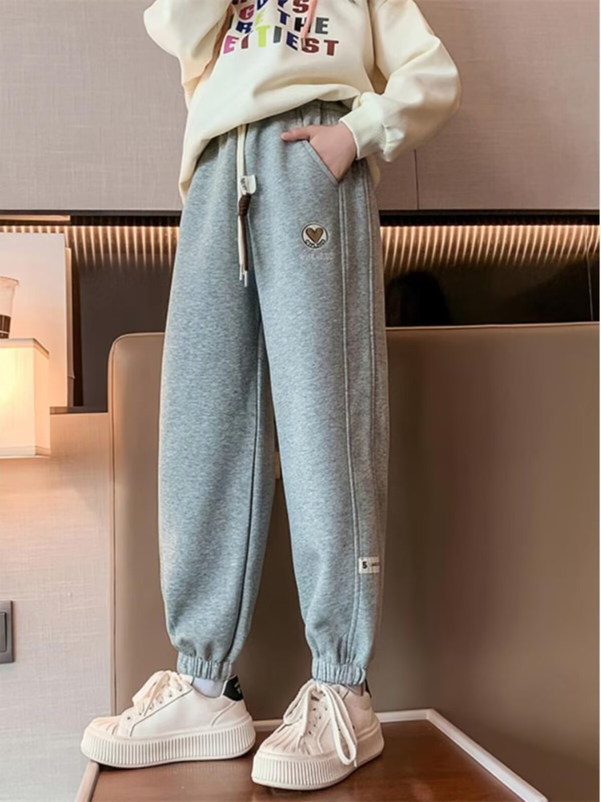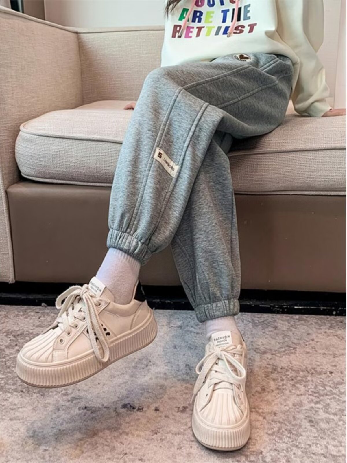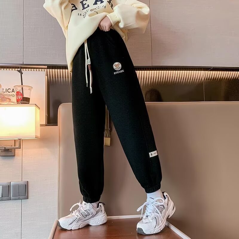 소녀 바지 가을 겨울 2025 새로운 패션 큰 어린이 느슨한 캐주얼 스웨트 팬츠 어린이 발 바인딩 스포츠 바지 정사이즈