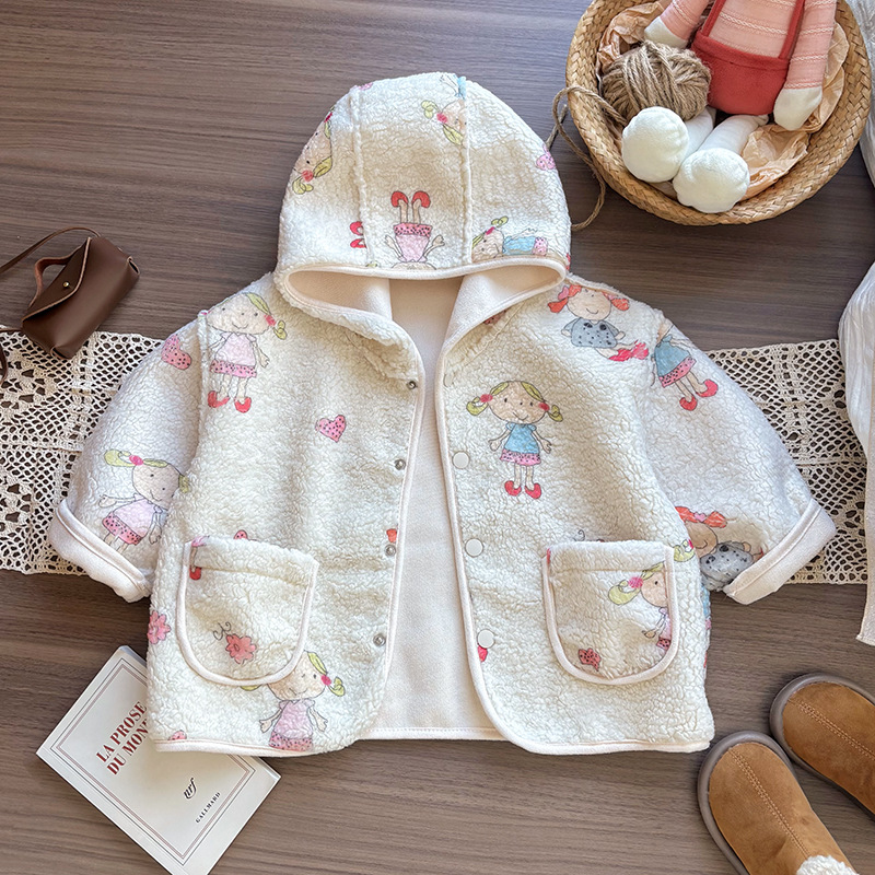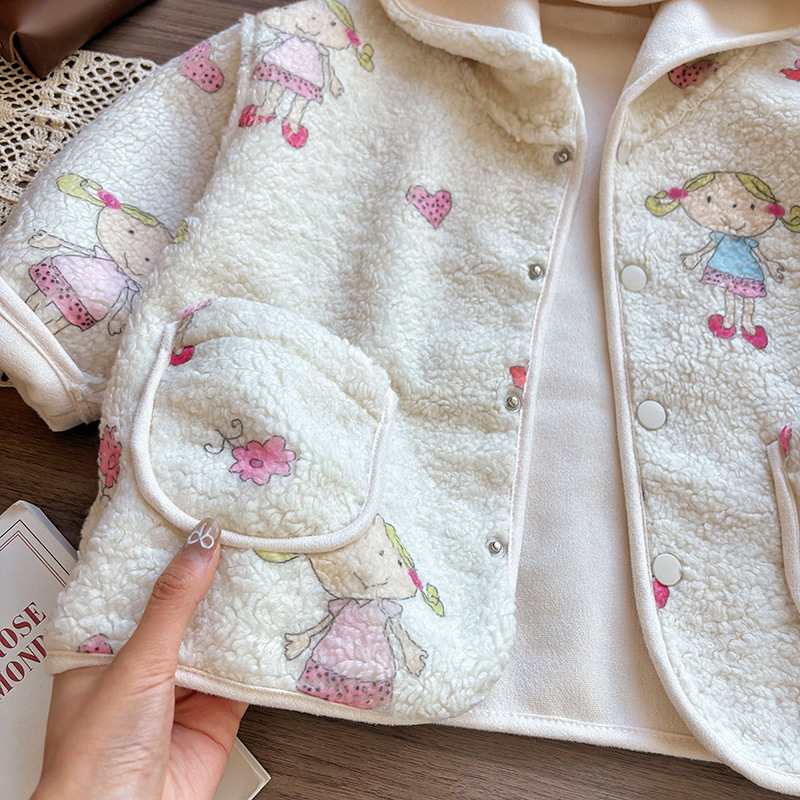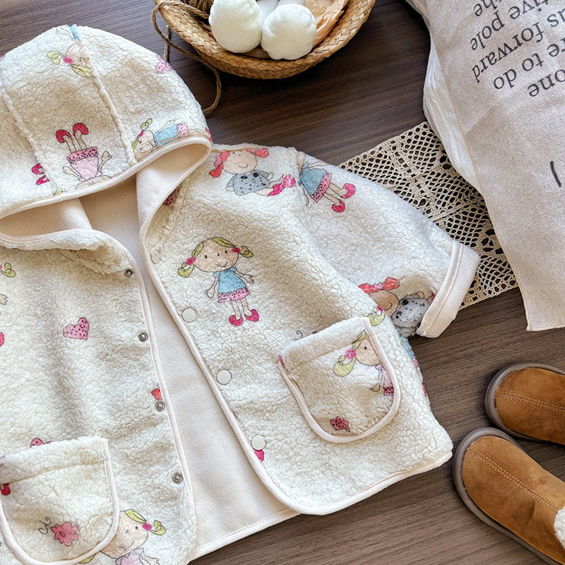어린이와 소녀의 봄과 가을 트렌디 한 새로운 패션 올 매치 베이지 그래피티 재킷 어린이 캐주얼 웨스턴 스타일 재킷 트렌디스토어 가기