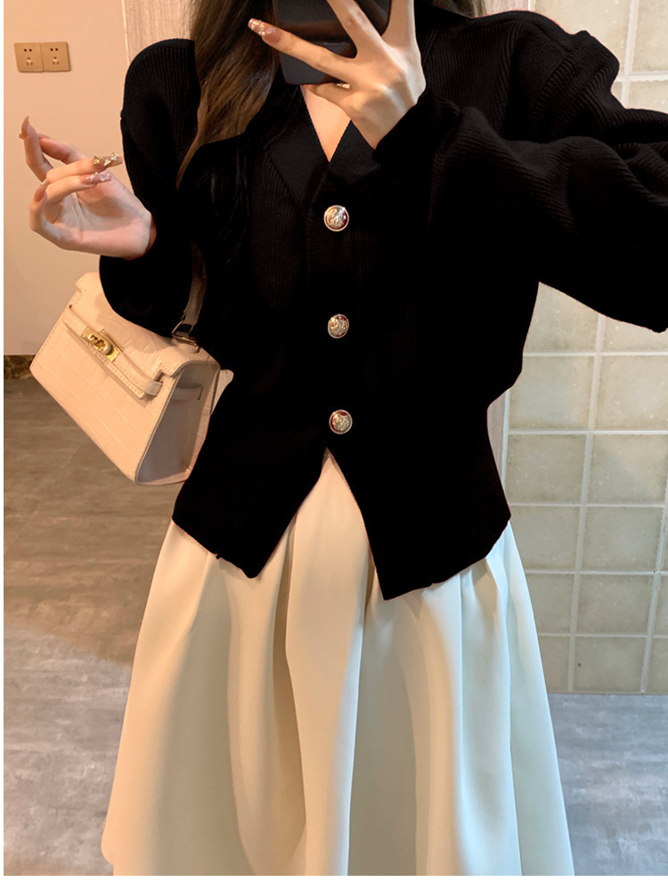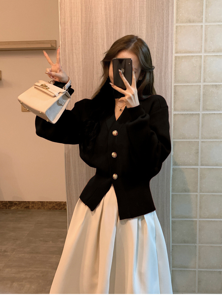 프랑스 블랙 샤넬 스타일 스웨터 카디건 여성의 봄과 가을 디자인 센스 틈새 허리 기질 니트 재킷 탑스토어 가기