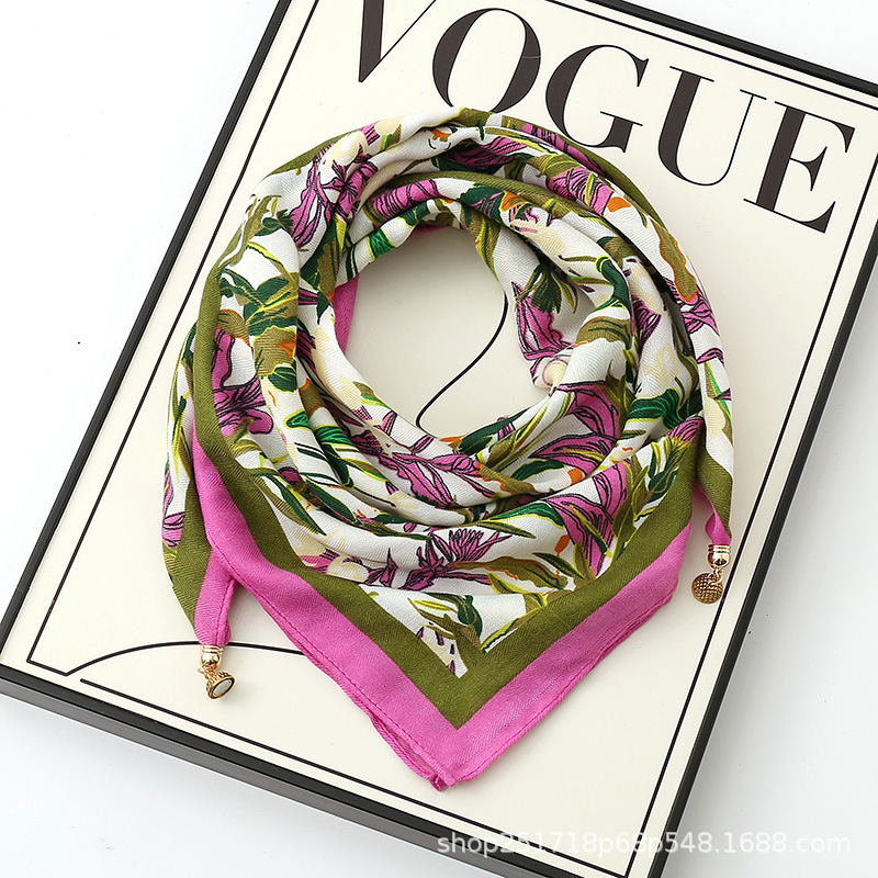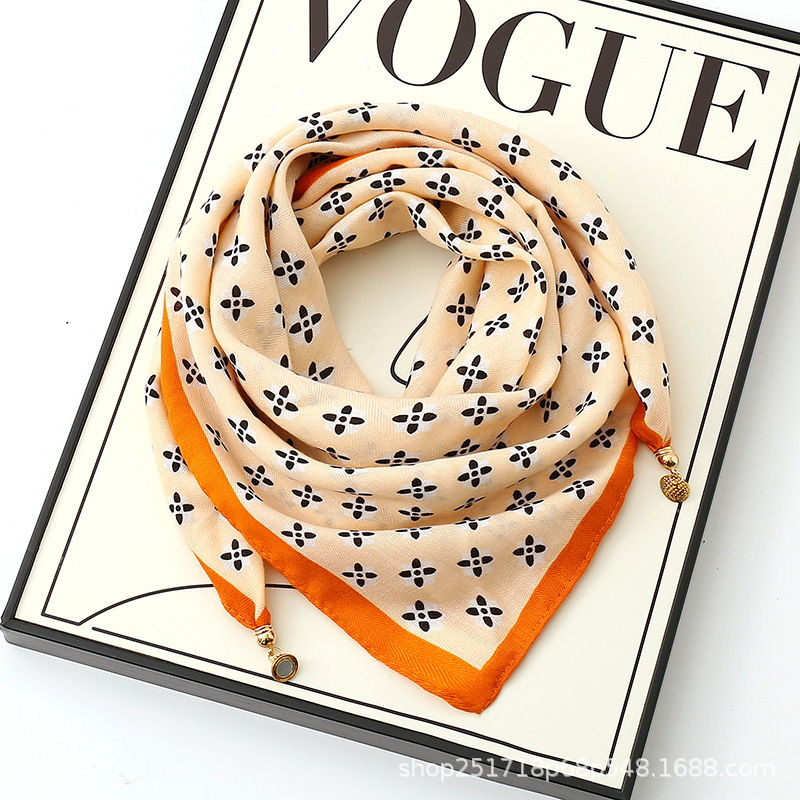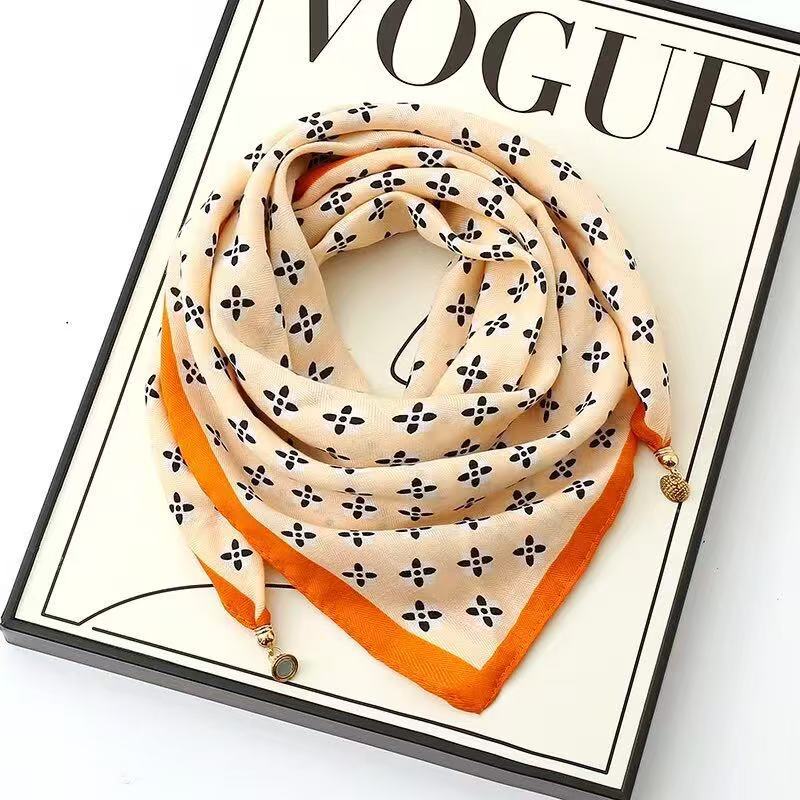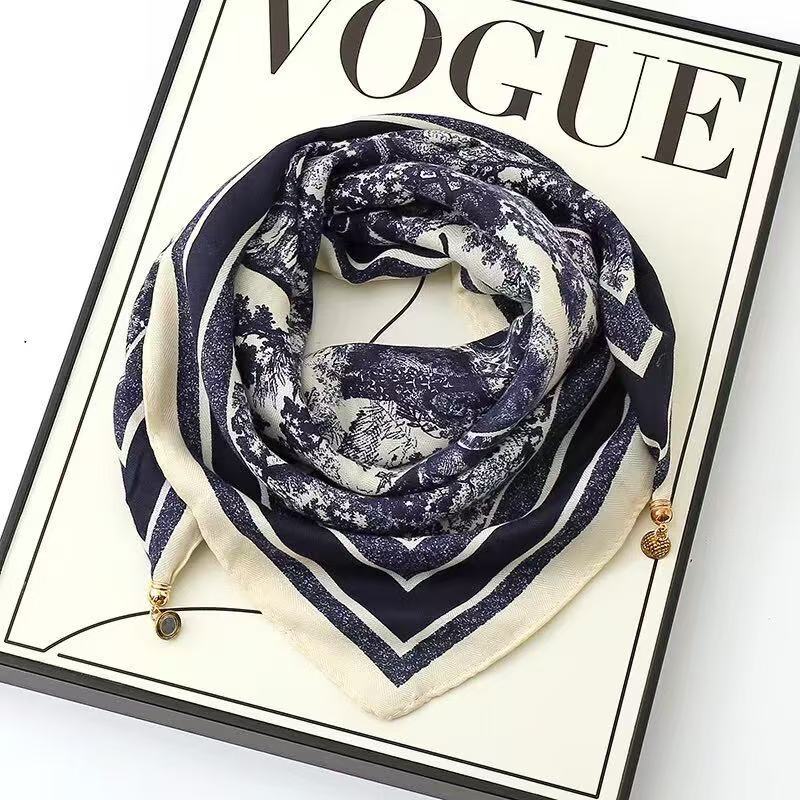 새로운 "작은 황금 공" 마그네틱 버클 고급 오리지널 실크 스카프 코튼 스카프 봄과 가을 여성의 따뜻한 스카프 스퀘어 스카프