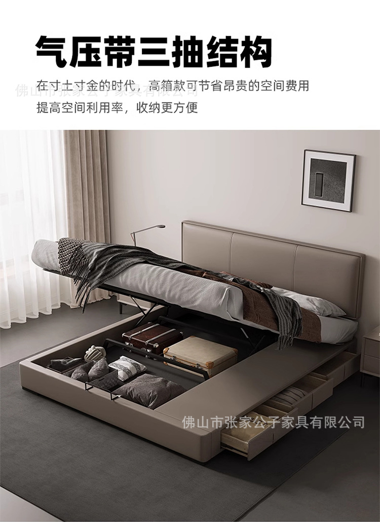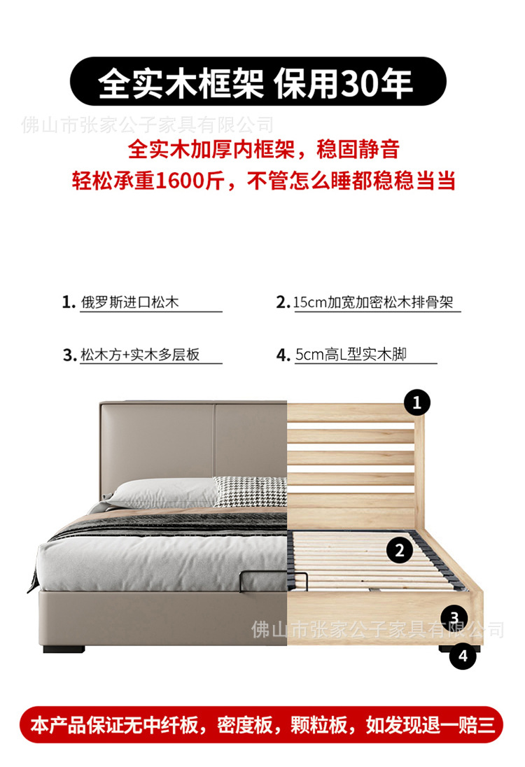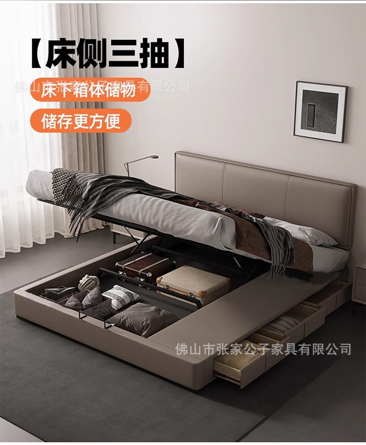 • 가죽 침대+천연 세척 라텍스 매트리스+캐비닛*1