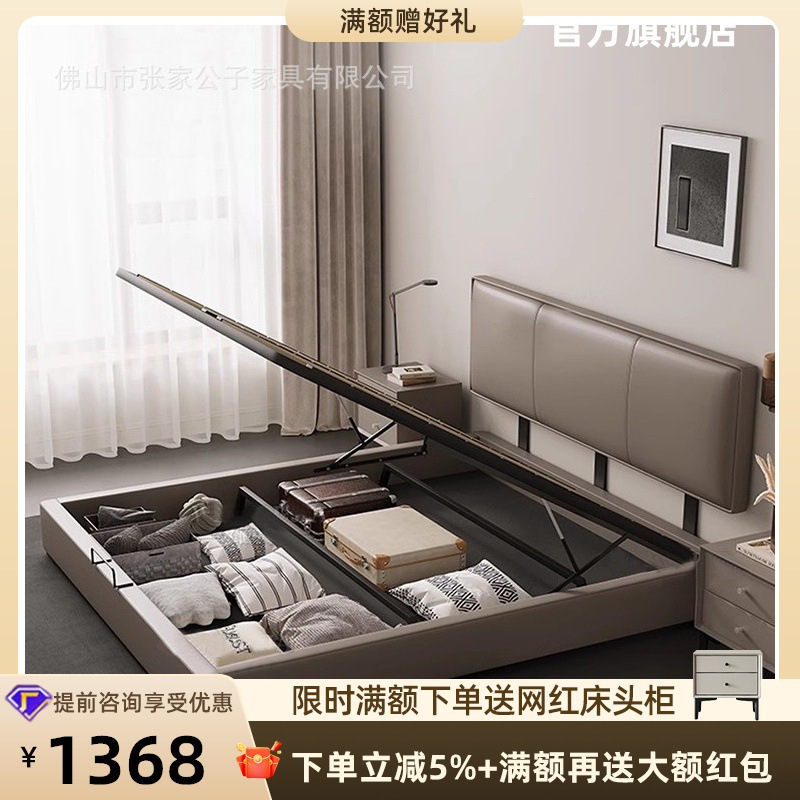 초박형 침대 옆 현대 미니멀 스토리지 스토리지 스토리지 가죽 침대 현대 간단한 두 번째 침실 평면 가장자리 슈퍼 공간 절약 더블 침대