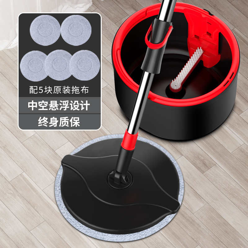 • [업그레이드 버전] 밝은 빨간색과 검정색(매달린 물통 + 진드기 제거 상자 + 단일 막대 + 대걸레 1개)