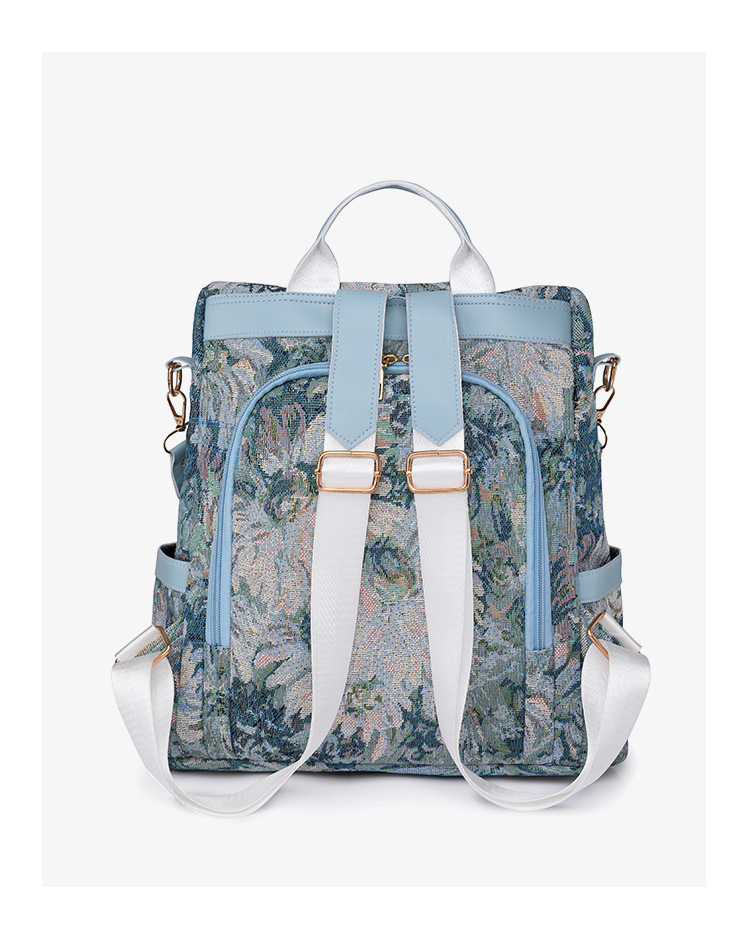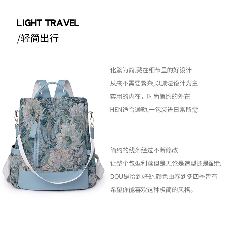어깨 가방 여성의 이중 용도 2025 새로운 직물 유행 대용량 도난 방지 배낭 골동품 유행 배낭
