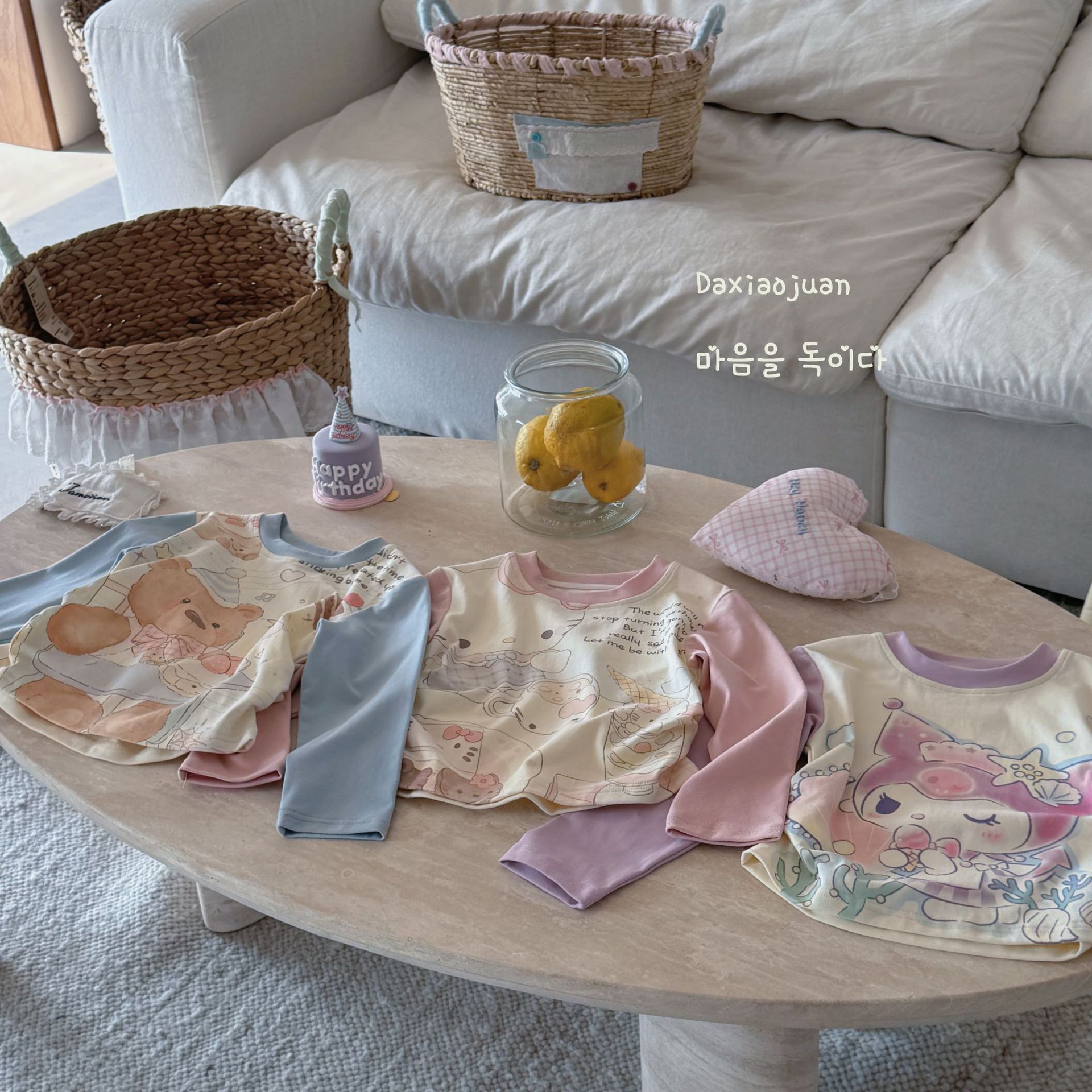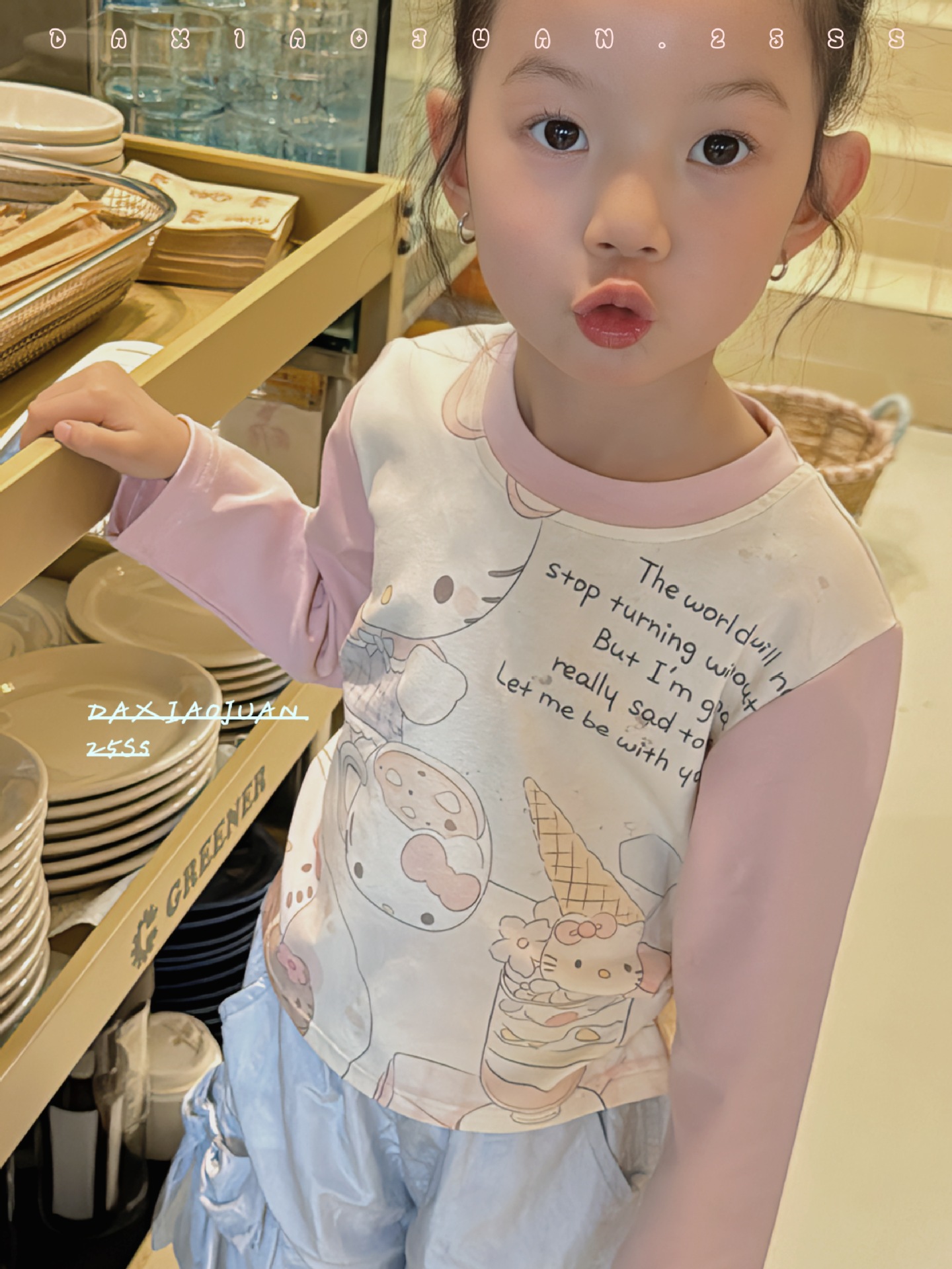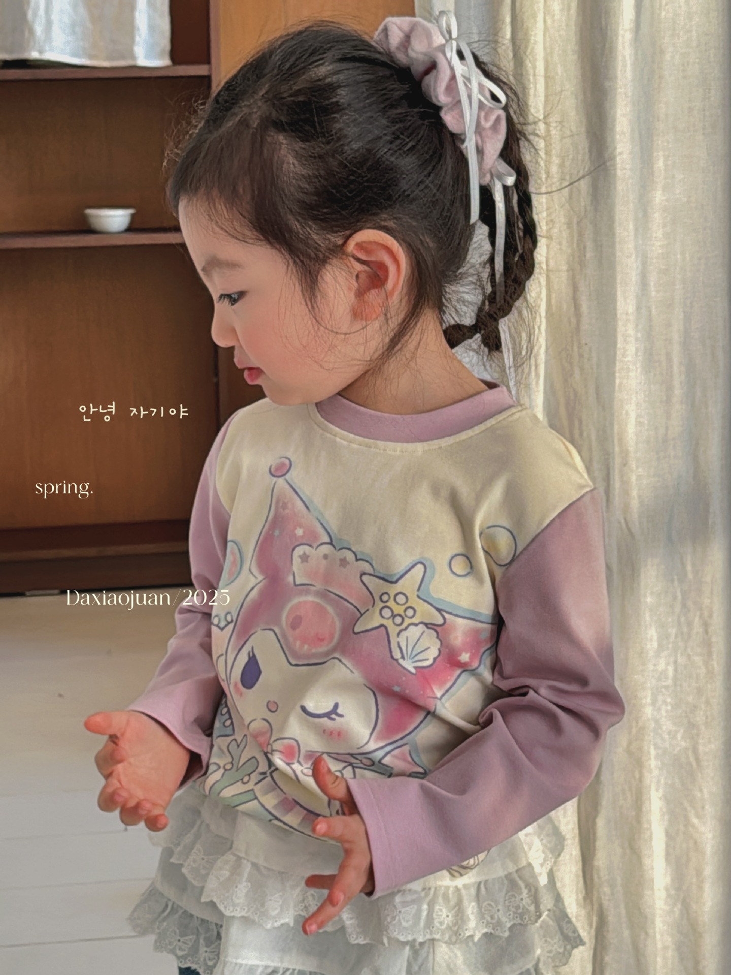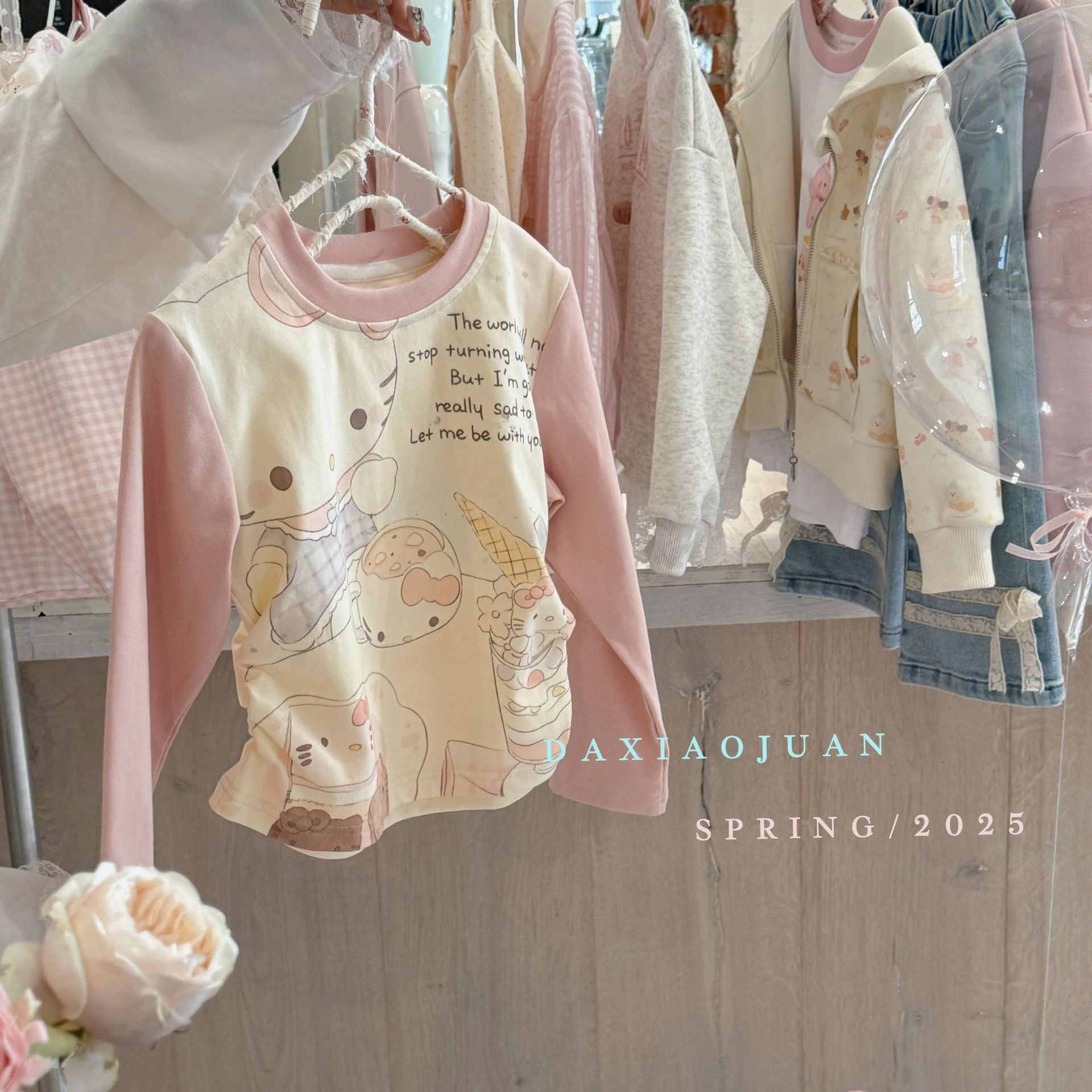즉시 출고 가능한 봄/가을 여아용 한국 스타일 만화 캐릭터 허리 조임 달콤한 아동복 긴팔 이너 티셔츠스토어 가기