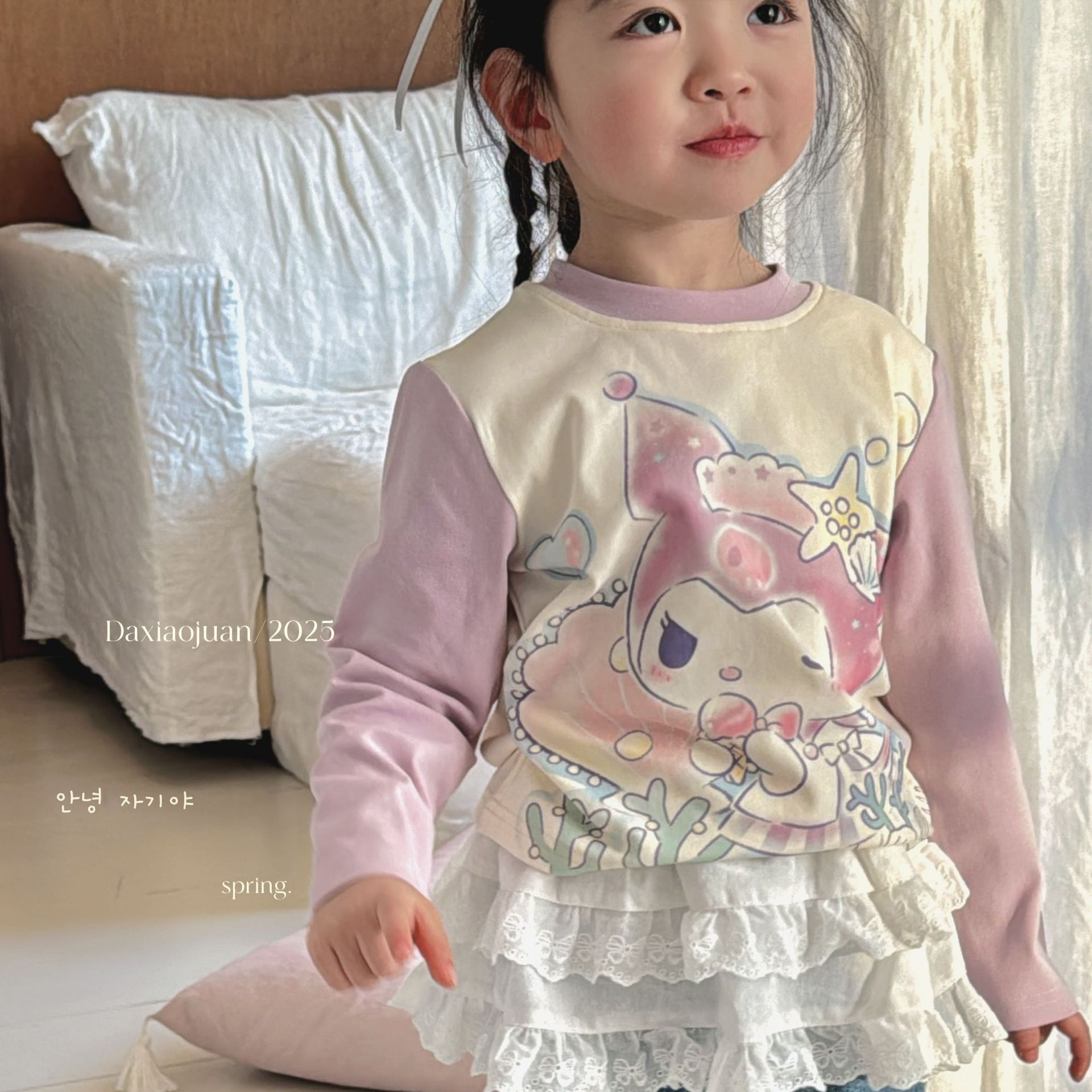 즉시 출고 가능한 봄/가을 여아용 한국 스타일 만화 캐릭터 허리 조임 달콤한 아동복 긴팔 이너 티셔츠