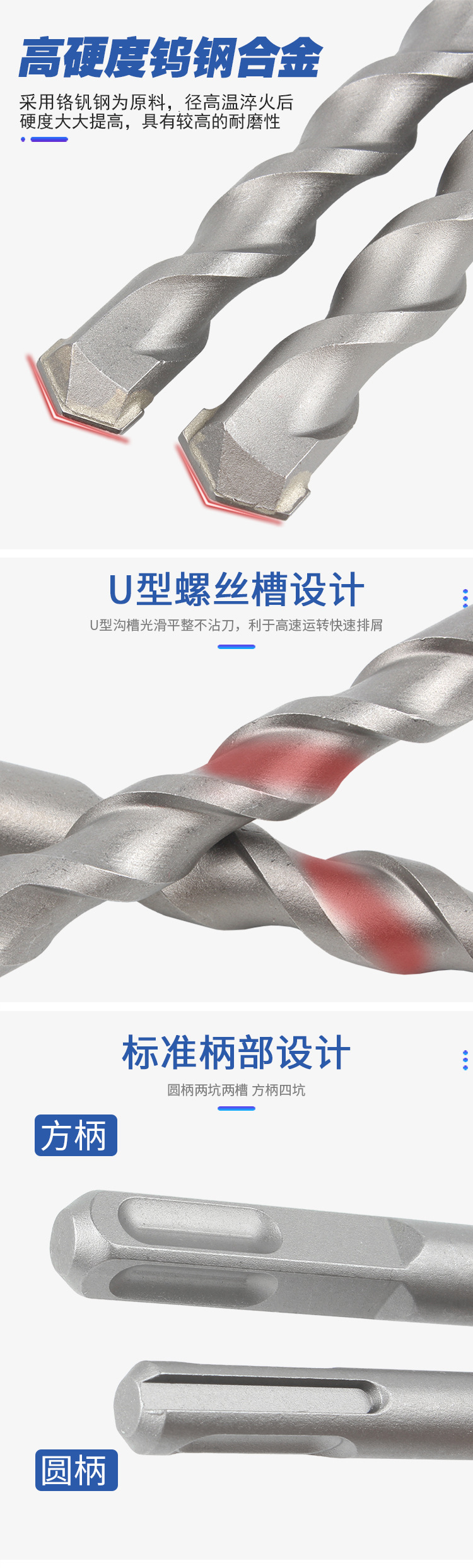 충격 전기 해머 비트 굴착 벽 시멘트 콘크리트 드릴링 비트 슬롯 4 피트 스퀘어 생크 비트