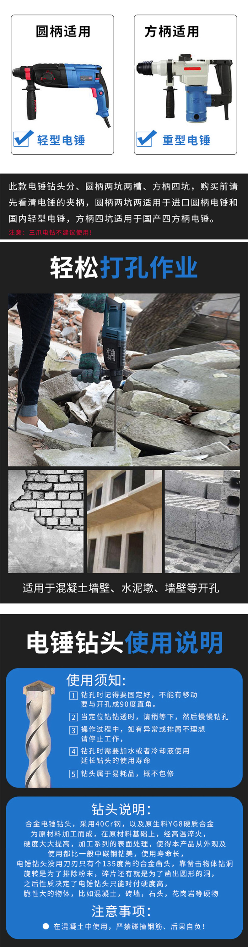 충격 전기 해머 비트 굴착 벽 시멘트 콘크리트 드릴링 비트 슬롯 4 피트 스퀘어 생크 비트스토어 가기
