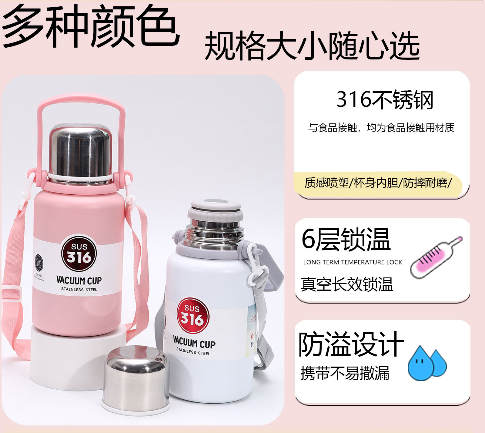 새로운 스타일의 휴대용 스포츠 주전자 Lanyard 대용량 316 스테인레스 스틸 열 냄비 등반 열 절연 킹 콩 냄비스토어 가기