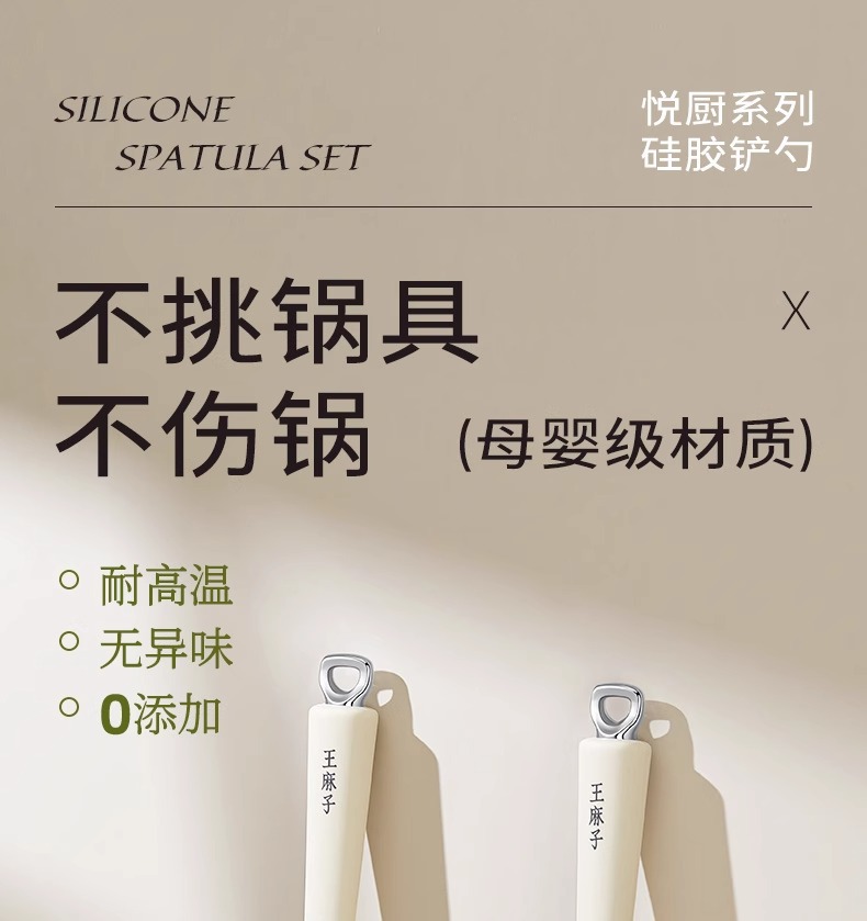 왕마쯔 위에추(王麻子悦厨) 미끄럼 방지 실리콘 냄비 주걱, 가정용 볶음용 주걱, 논스틱 팬 전용, 고온 내성, 프라이팬용 주걱