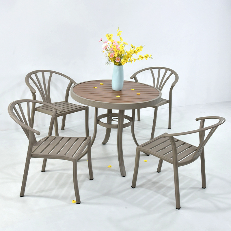 • 4+1 알루미늄 튜브 나뭇결 원형 테이블 직경 85
