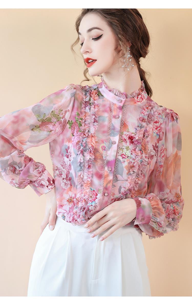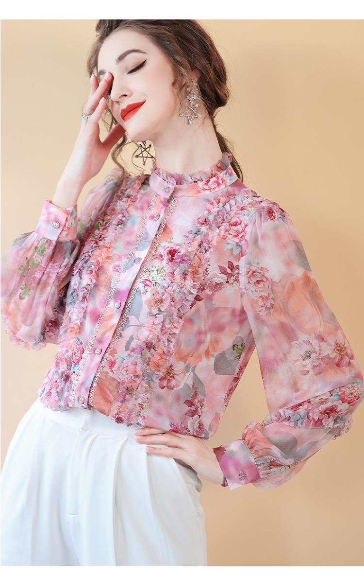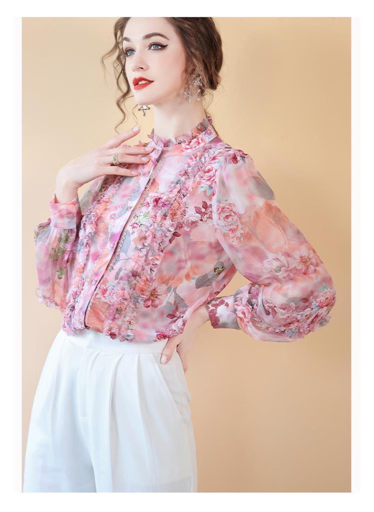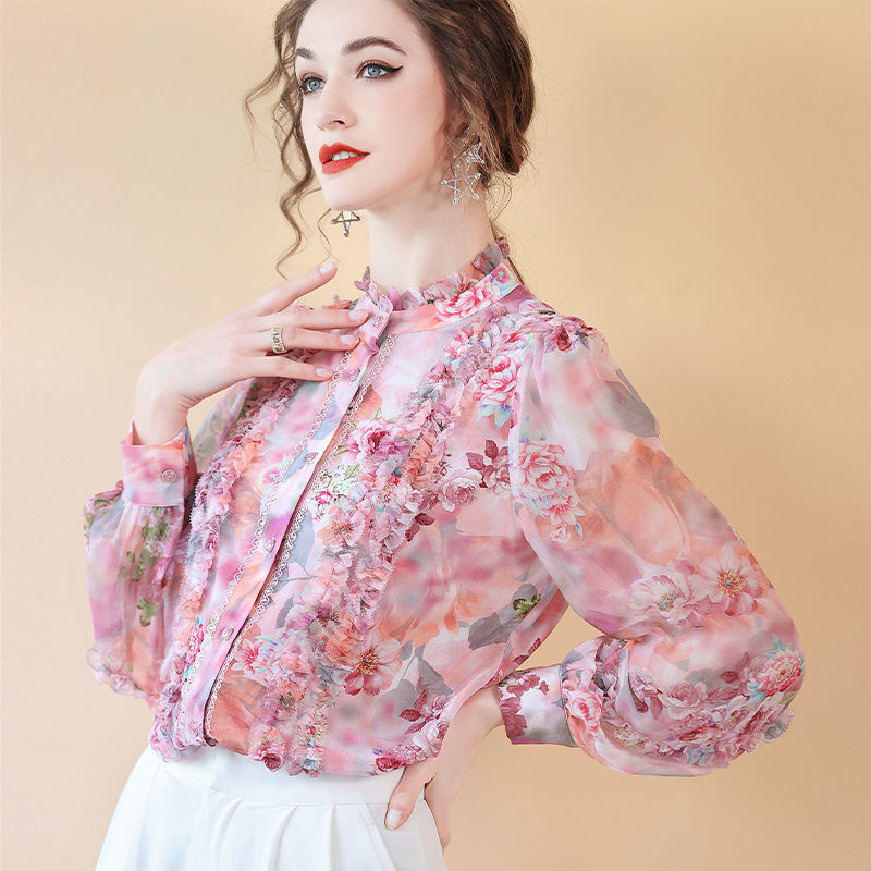 A6C2025 봄과 가을 새로운 프랑스 입장 럭셔리 사교계 레트로 긴팔 꽃 우아한 서양식 셔츠
