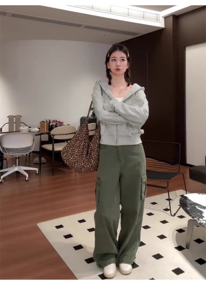 그레이 짧은 후드 티셔츠 지퍼 초가을 코트 여성 봄, 가을 슬림핏 한국 카디건 탑 가을스토어 가기