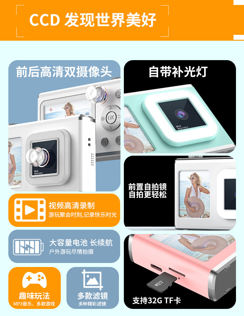 국경 디지털 카메라 ccd HD 게임 어린이 카메라 셀카 채우기 라이트 뷰티 카메라 카드 기계스토어 가기