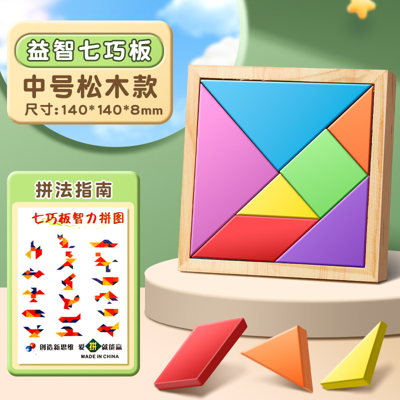 어린이 Tangram 장난감 다채로운 건물 블록 다양한 모양 기하학적 일치 크기 학생 1 학년 가르치는 원조 나무